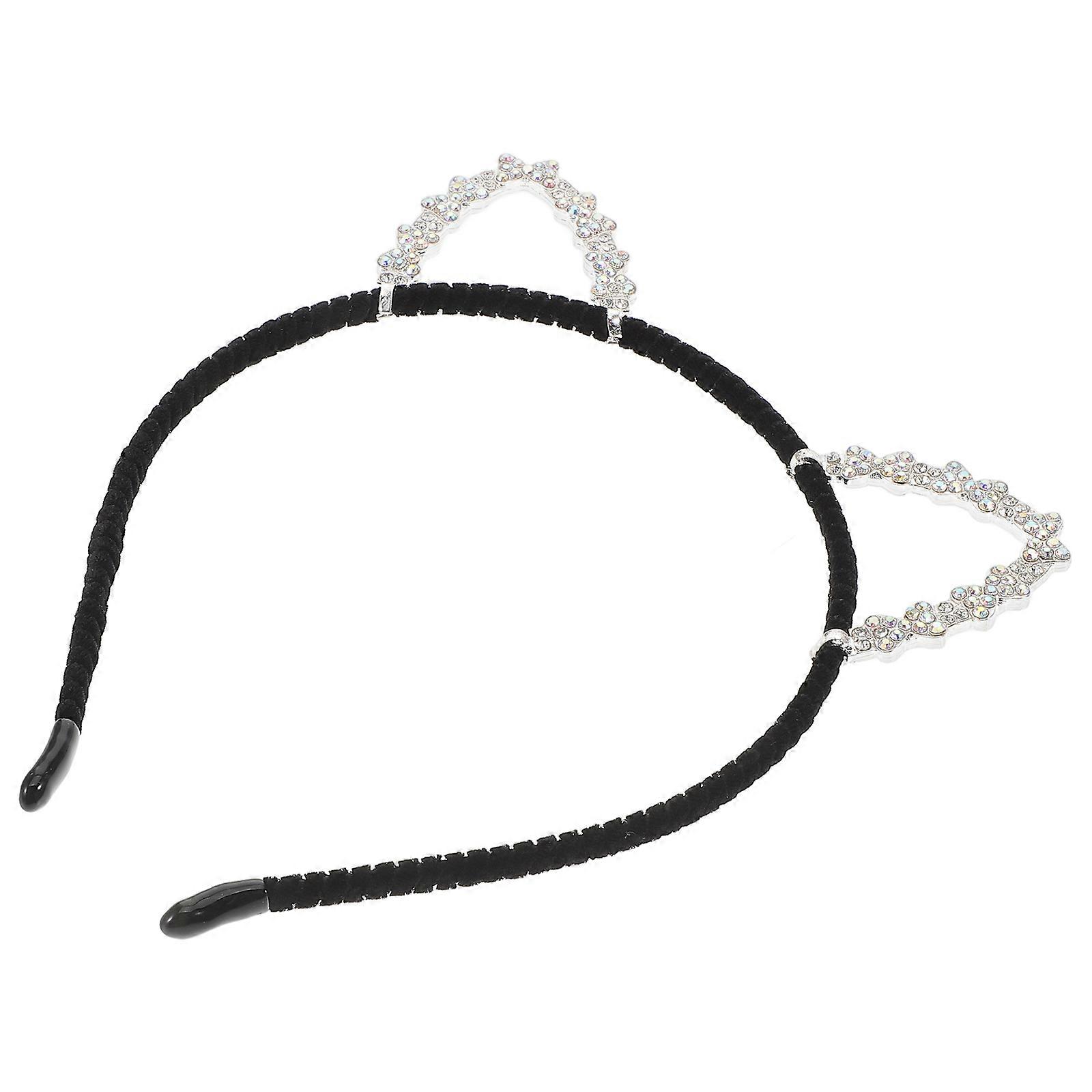 Fashionable Silver Cat Ear Headband with Rhinestone and Zinc Alloy for Women Party Accessories