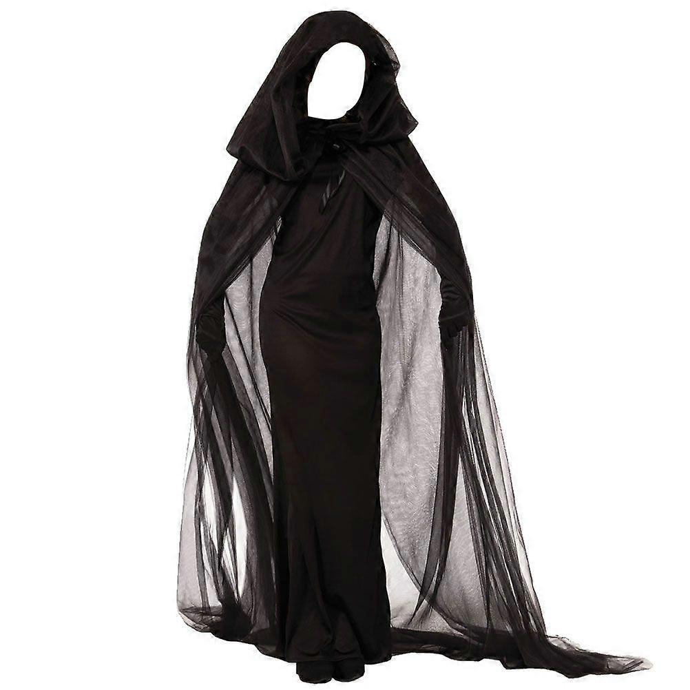 Women Halloween Witch Costume Dark Ghost Dress Sorceress Dress Role Play Accessory for Cosplay Masquerade Performance - Size S(Black)
