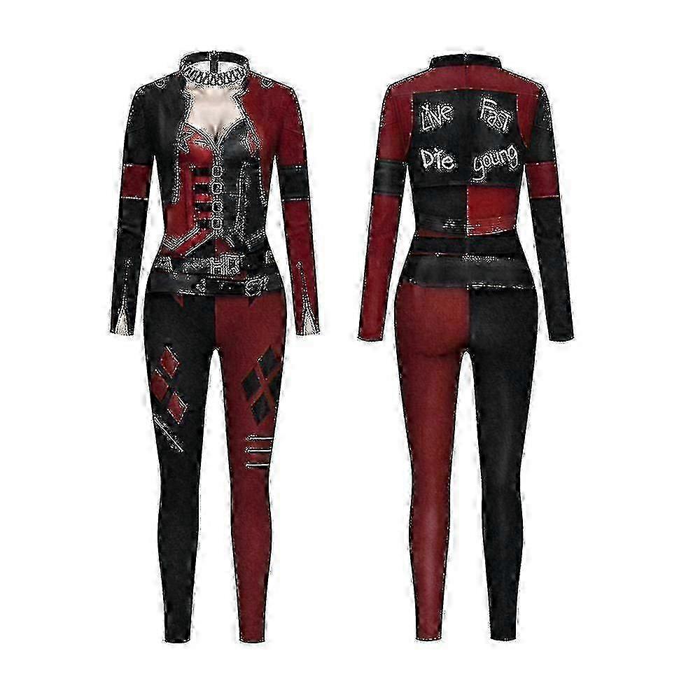 Women Harley Quinn Costume Classic Harley Quinn Halloween Cosplay Costume Jumpsuit High Quality, Happy H