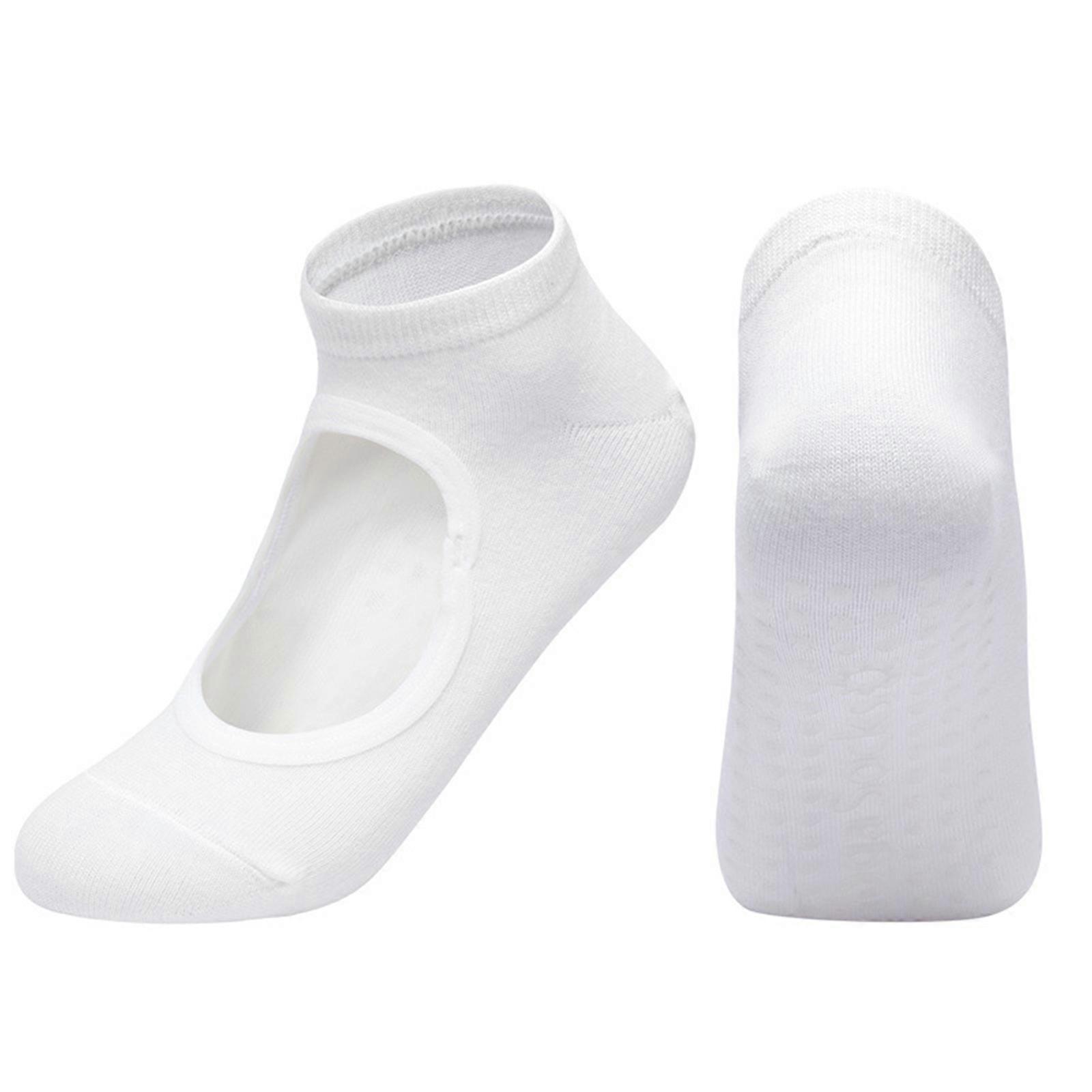 Women Pilates Grip Socks Slip Resistant Pilates Socks Full Toe Socks Ankle Fall Prevention Grip Socks for Fitness Dance White