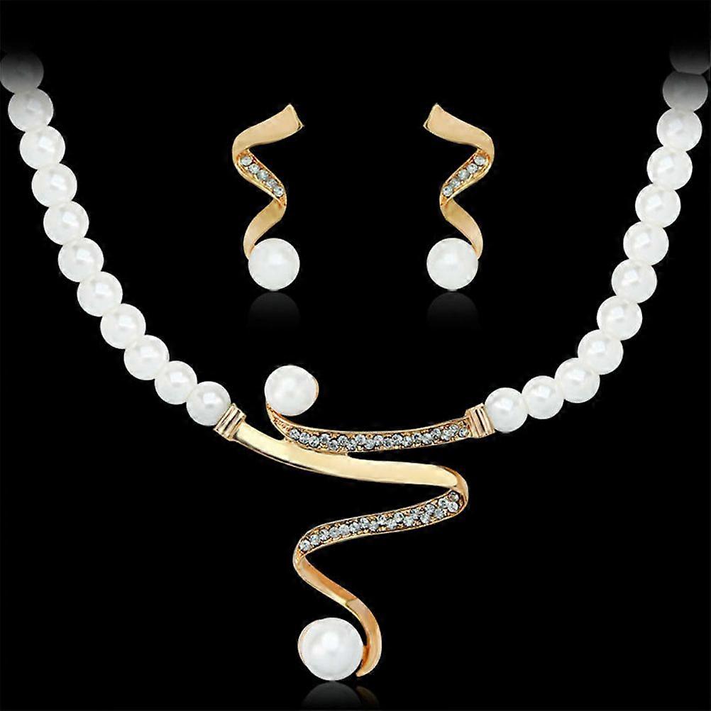 Women Bridal Wedding Party Prom Pearl Rhinestone Necklace Earrings Jewelry Set