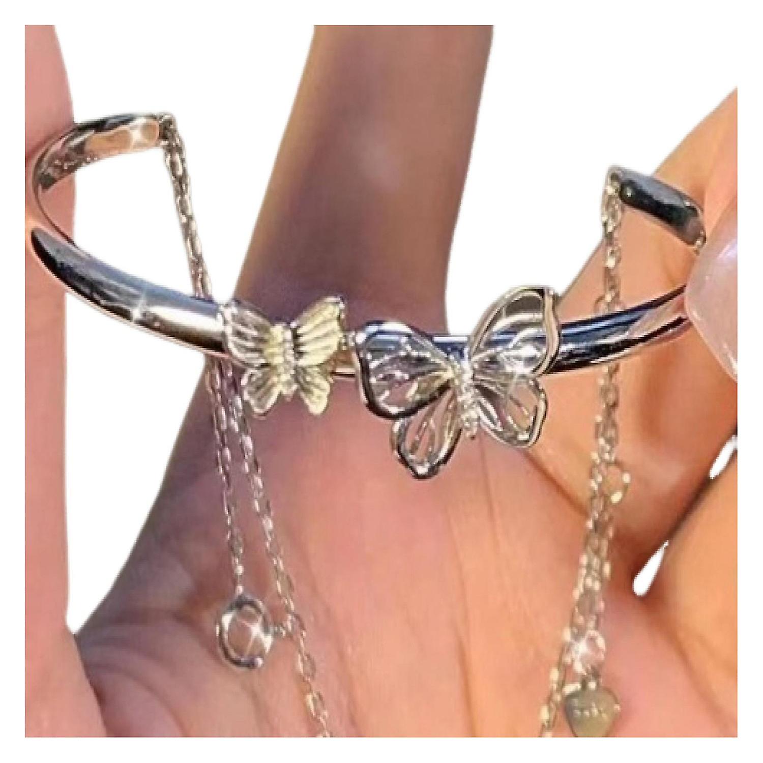 Women Bracelet Chain Tassel Decor Half Bangle Opening Adjustable Butterfly Pendant Solid Color Stain