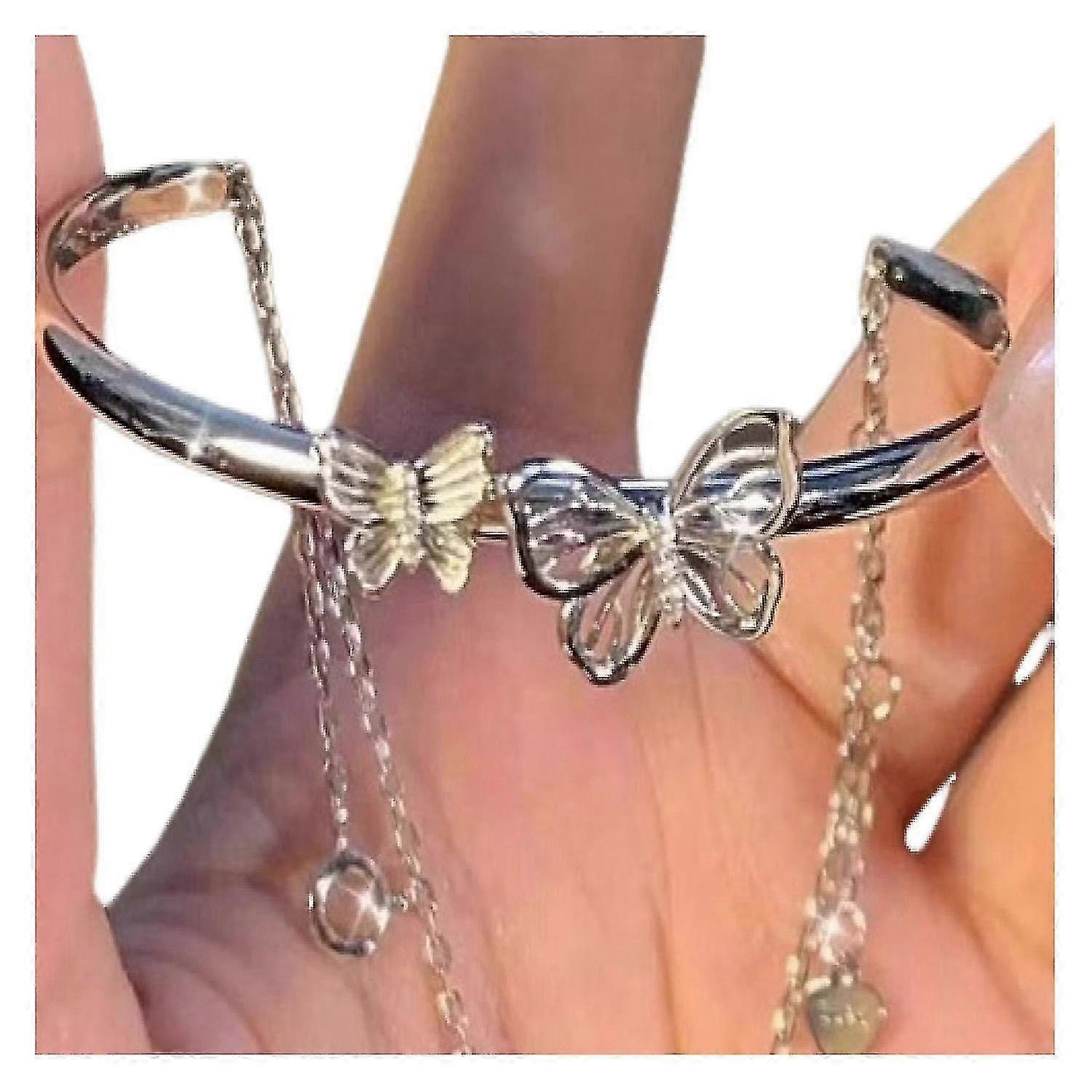 Women Bracelet Chain Tassel Decor Half Bangle Opening Adjustable Butterfly Pendant Solid Color Stain
