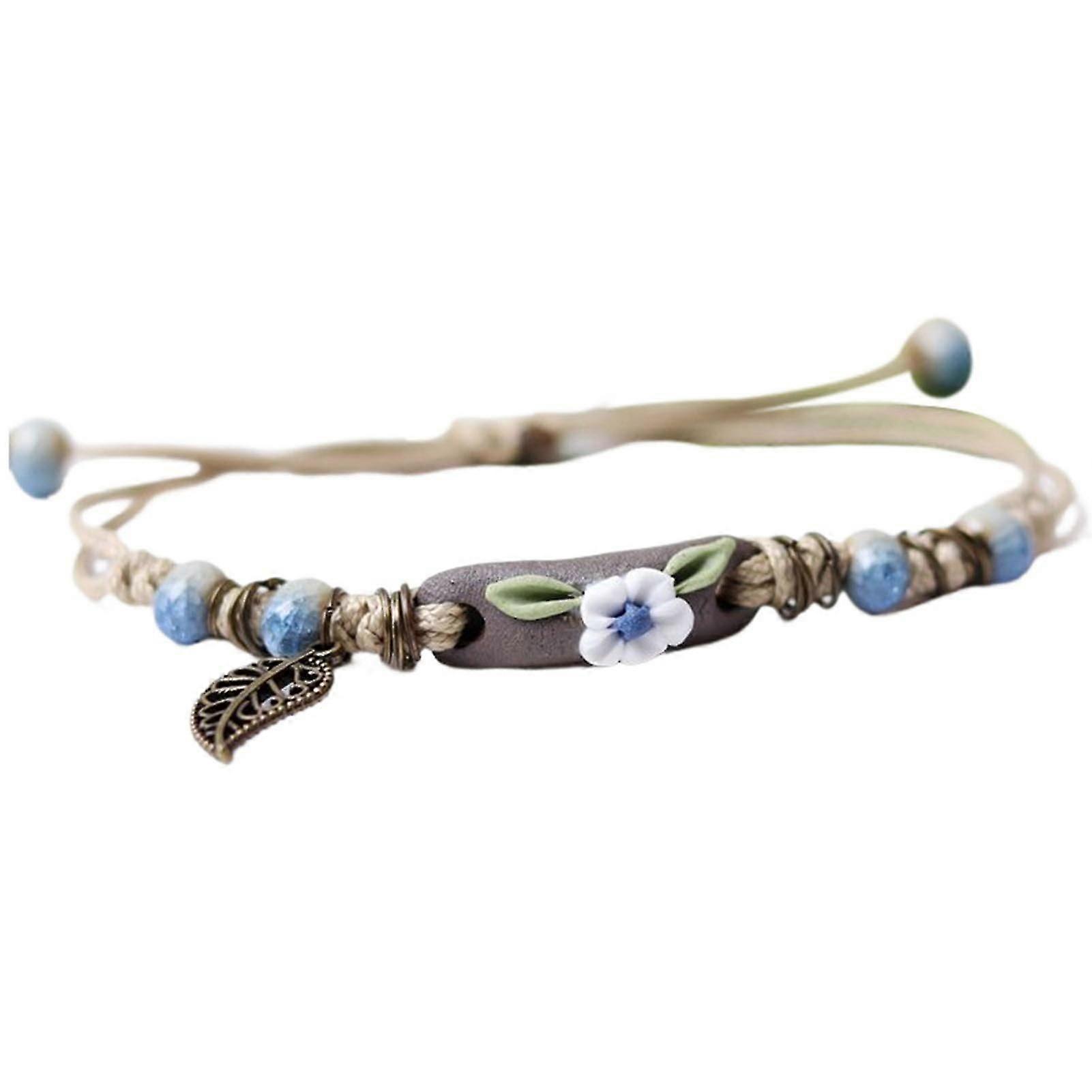 Women Bracelet Handmade Braided Woven Ceramic Beads Hollow Leaf Ethnic Style Gift Adjustable Flower Charm Students Bracelet Rope Fashion Jewelry