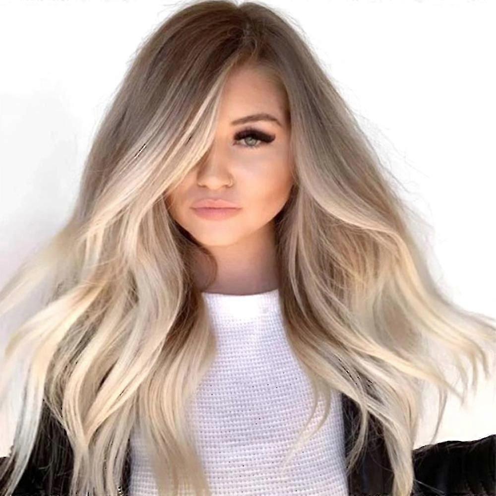 Women Blonde Natural Wig Long Curly Hair Wig Headgear1pcs)