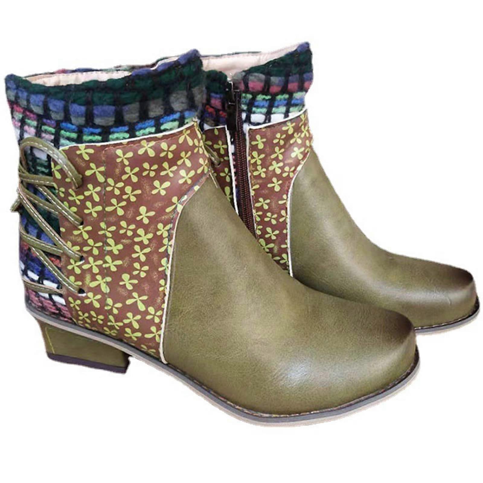 Women Booties Round Toe Thick Heel Zipper Western Style Casual Autumn Green 35