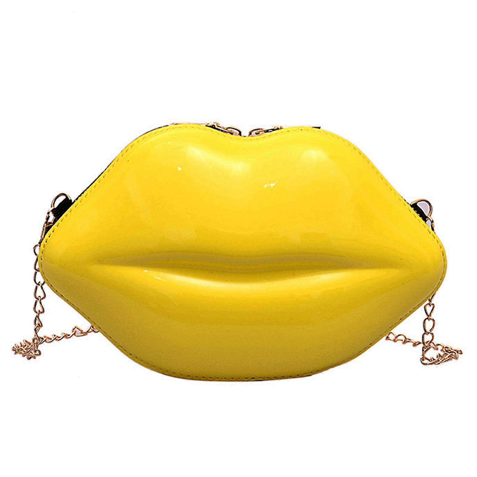 Women Plastic Shoulder Bag Cute Lip Shape Crossbody Bag with Metal Chain Small Banquets Evening Purse Phone Pouches Yellow