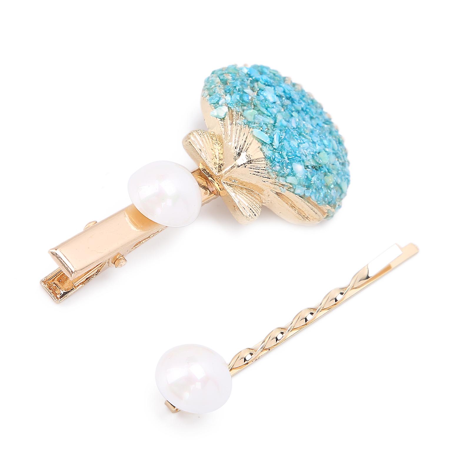 Women Faux Pearl Shell-Shaped Hair Clip Metal Girls Exquisite Decorative Hairpin Gift