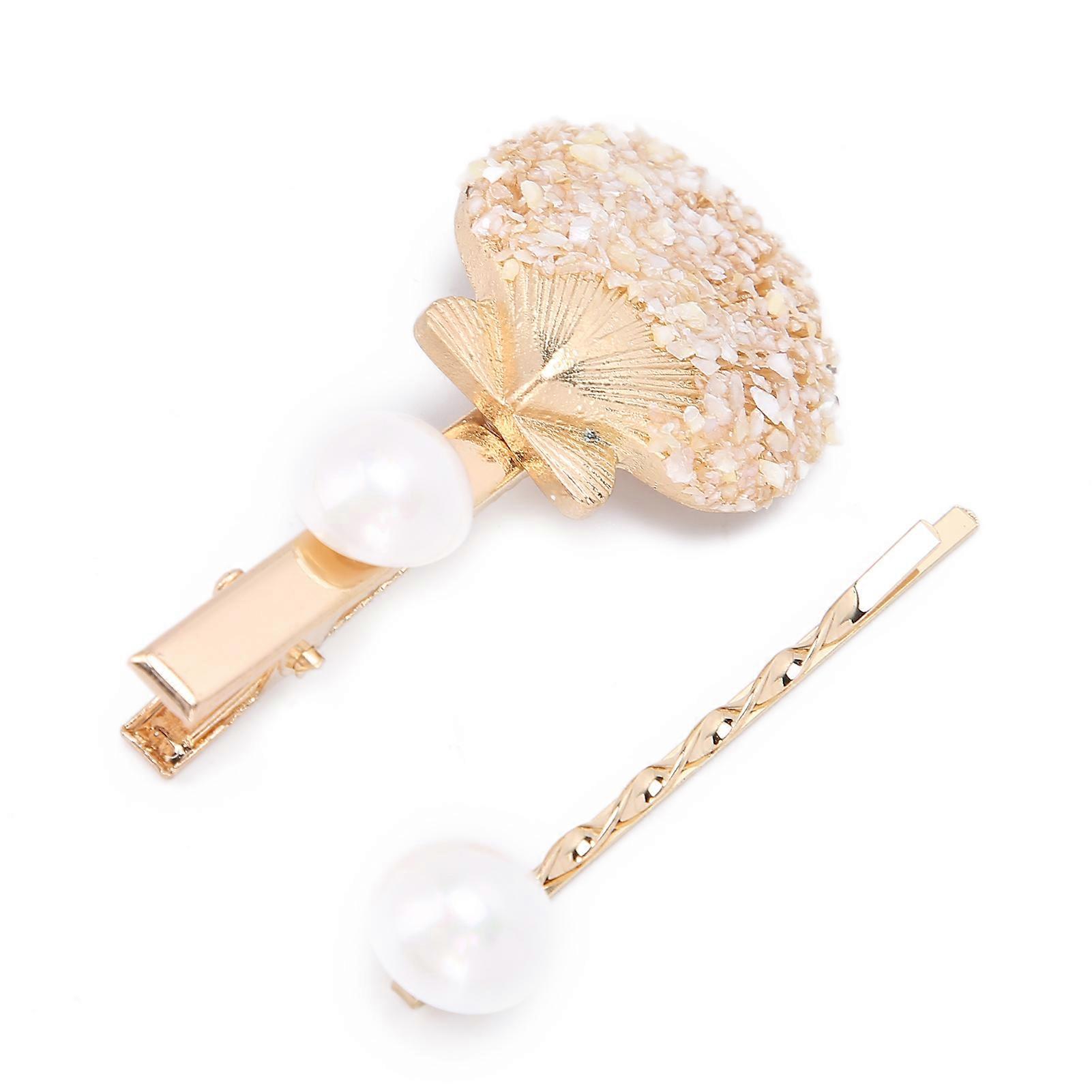 Women Faux Pearl Shell-Shaped Hair Clip Metal Girls Exquisite Decorative Hairpin Gift