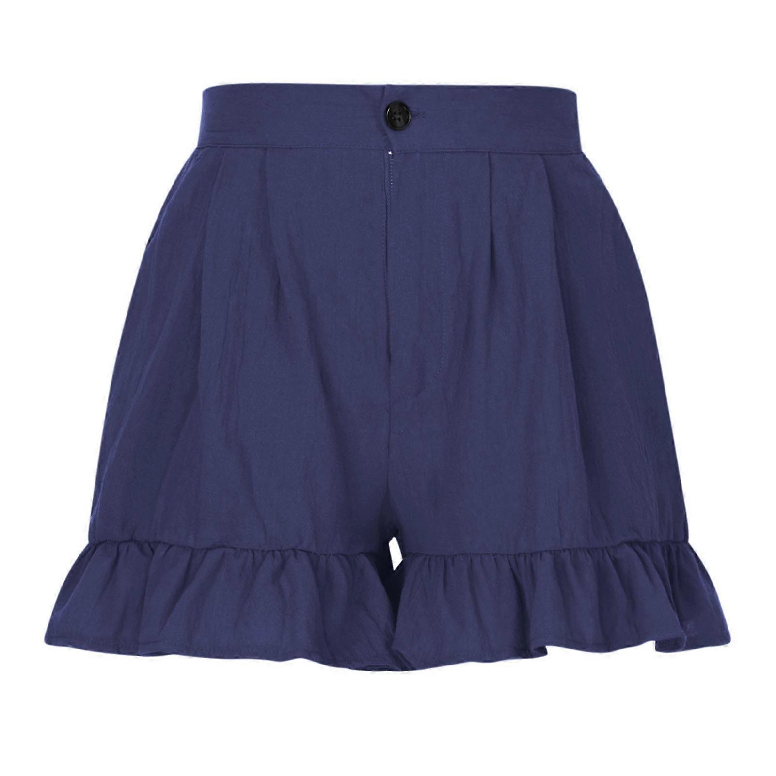 Women Ruffled Hem Shorts Buckled High Waist Wide Leg Pants for Party Vacation Daily Life Dark Blue 3XL