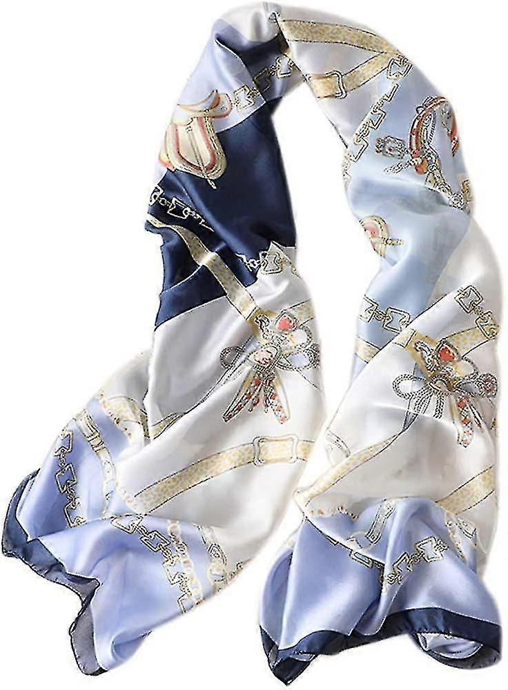 Women Floral Silk Scarf, Ladies Silk Scarf Blue Flowers Simple Stylish Wraps