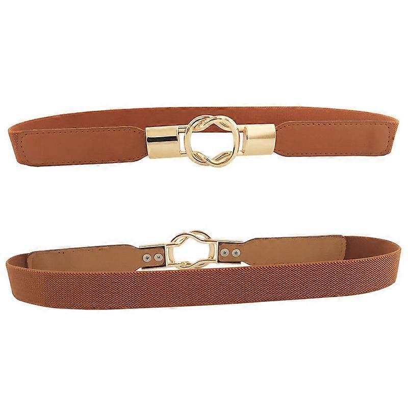 Women Belt Elastic Skinny Thin Waist Dress Waistband Gold Metal Buckle