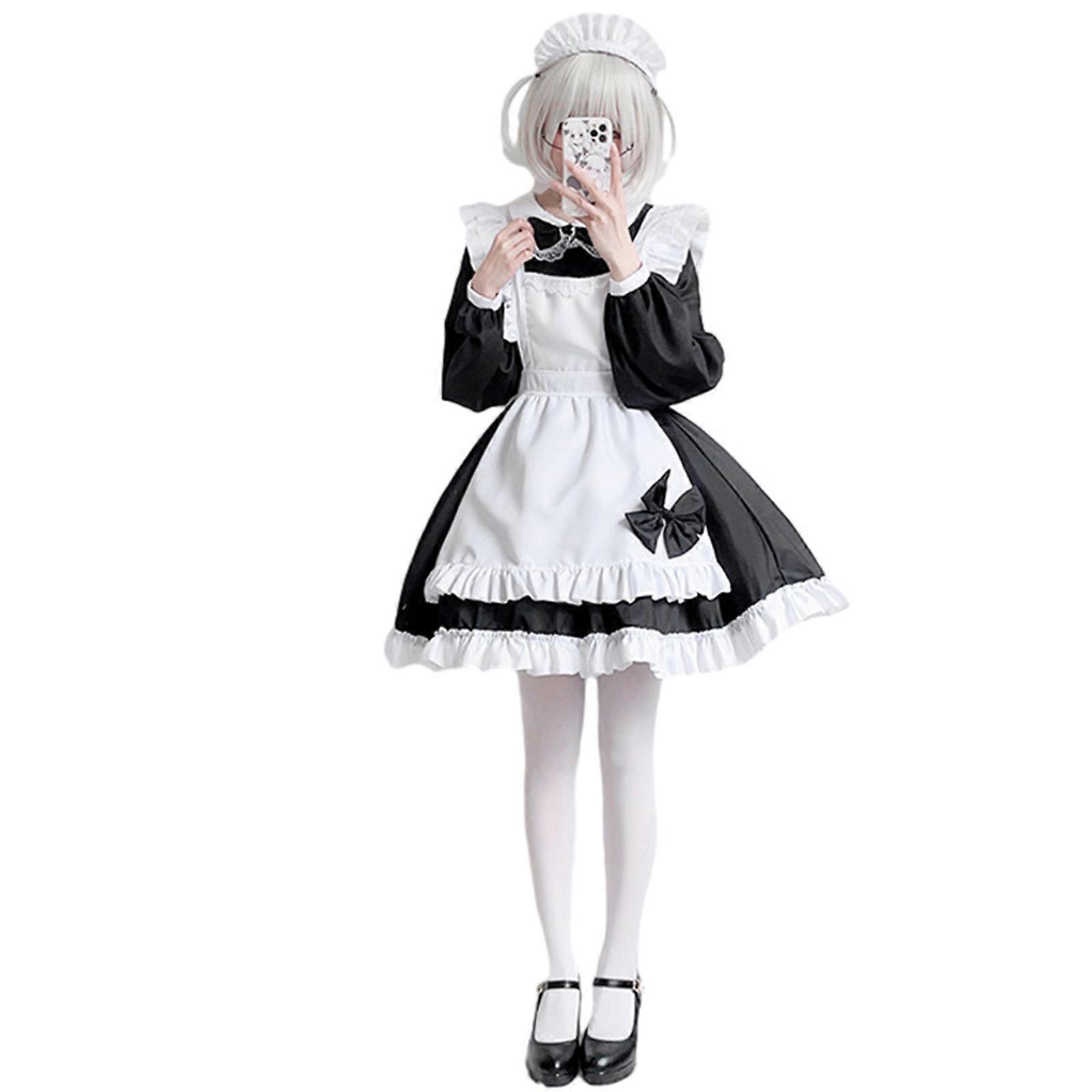 Women Maid Dress Outfit Anime Maid Costume Accessories Halloween Cosplay Costumes Maid Dresses and Apron Kits Black XL