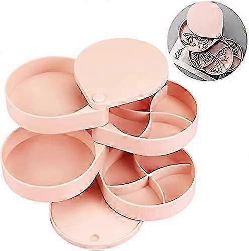 Women's Round Jewelry Box, Portable Travel Jewelry Box, Gift Jewelry Box 4 Levels 360 Rotation Storage Necklaces, Rings, Bracelets, Necklaces