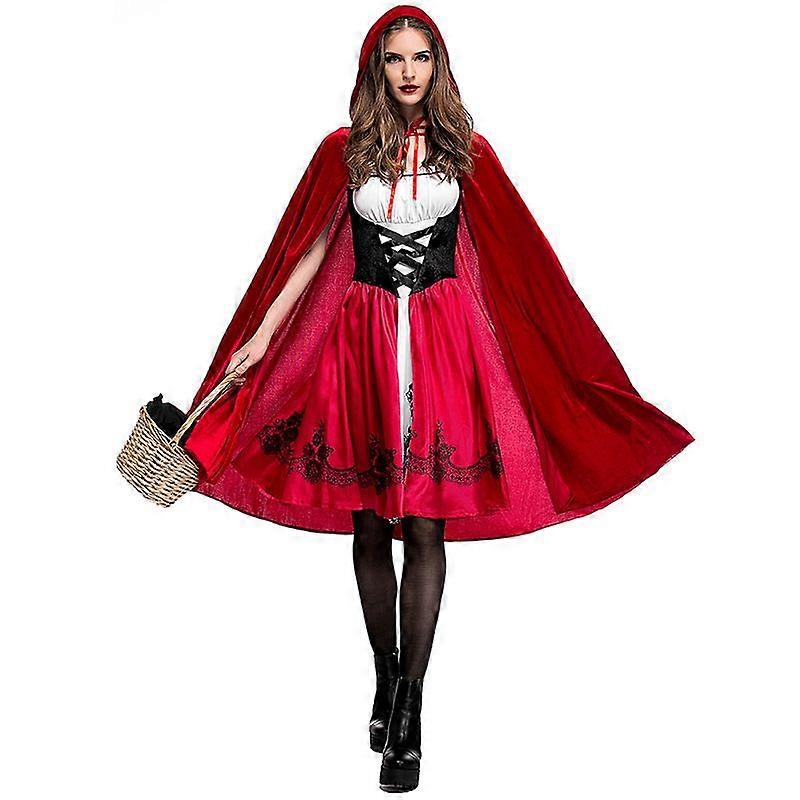 Women Little Red Riding Hood Costume Christmas Halloween Party Dress With Cape