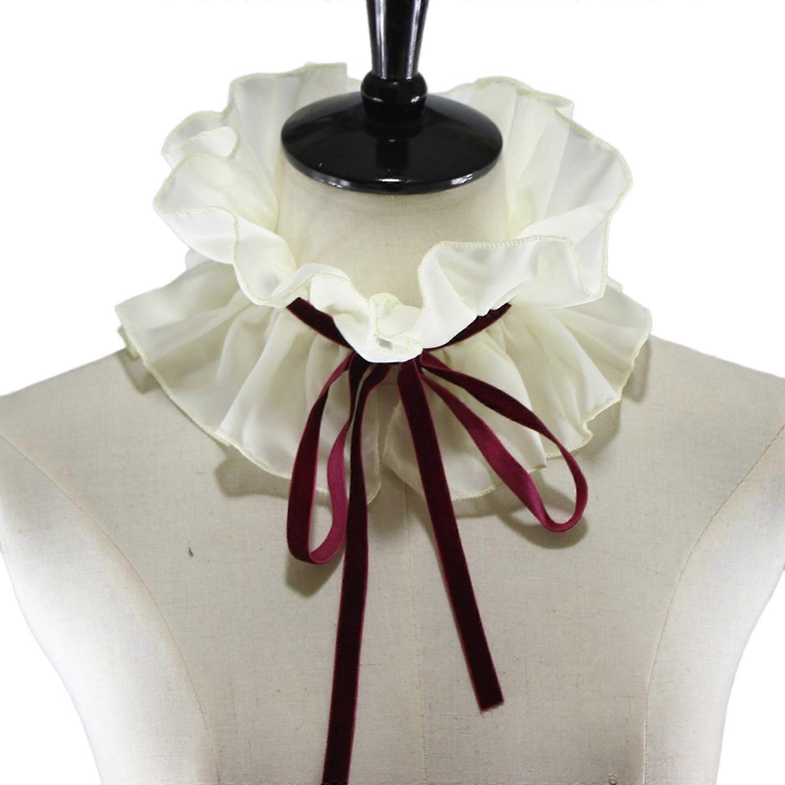 Women Renaissance Elizabethan Chiffon Ruffle Fake Collar Vintage Neck Ruff Lace-Up Detachable Choker Shawl Wrap Costume cream color
