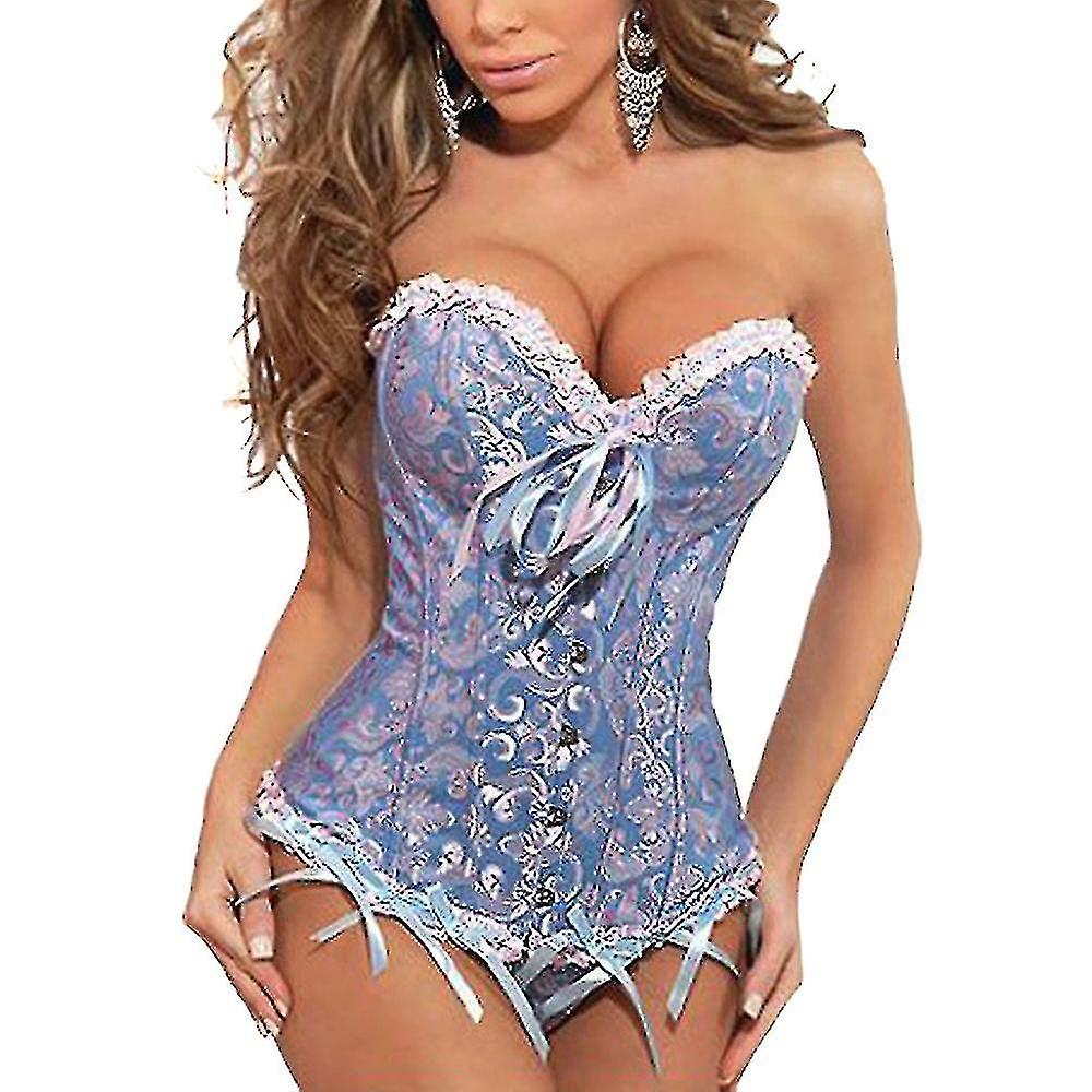 Women Retro Lace Up Boned Overbust Corset Bustier Bodyshaper Shapewear Tops Z