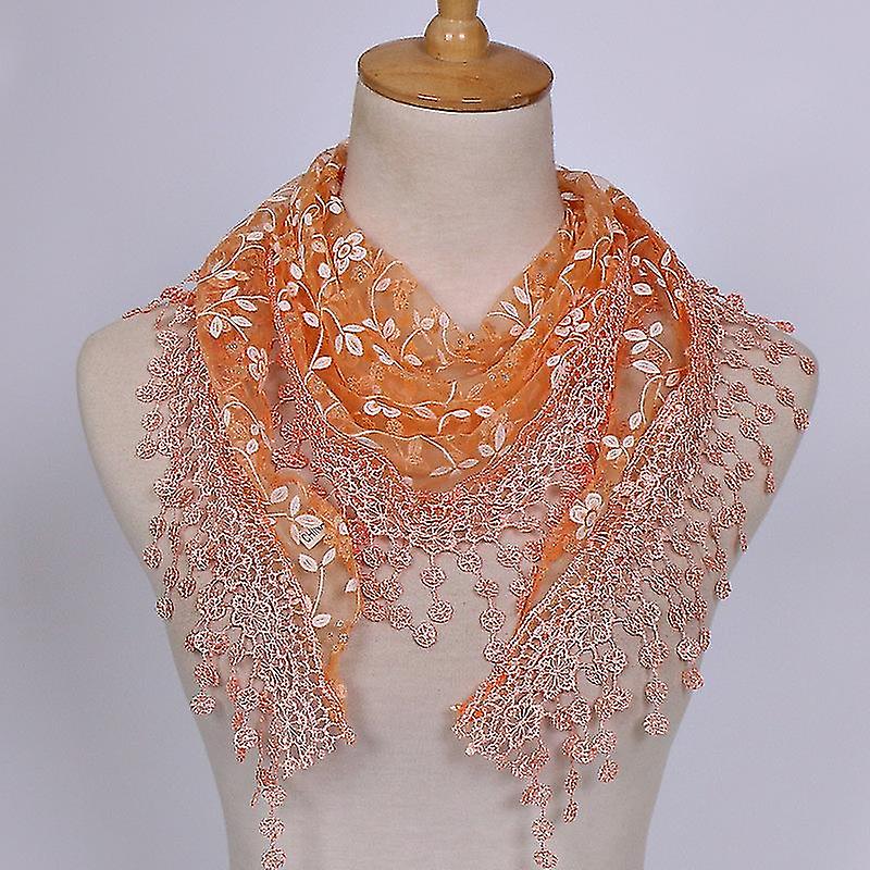 Women Lace Sheer Floral Scarf Shawl Wrap Tassel Scarf