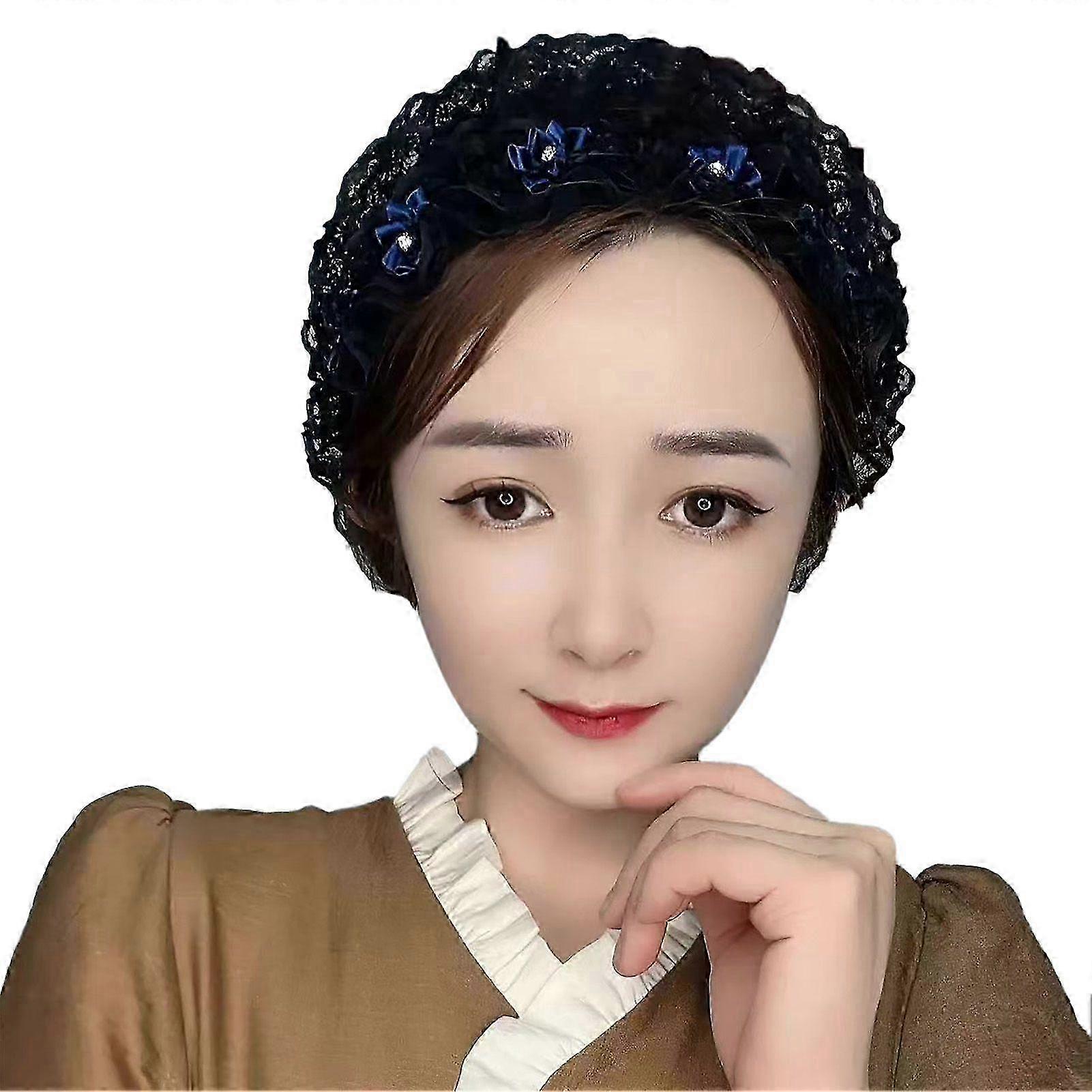 Women Lace Headwear Stylish Elegant 5 Flowers Breathable Lightweight Women Lace Headwrap Hat for Party Daily Summer Thin 5 Flowers Hat Black