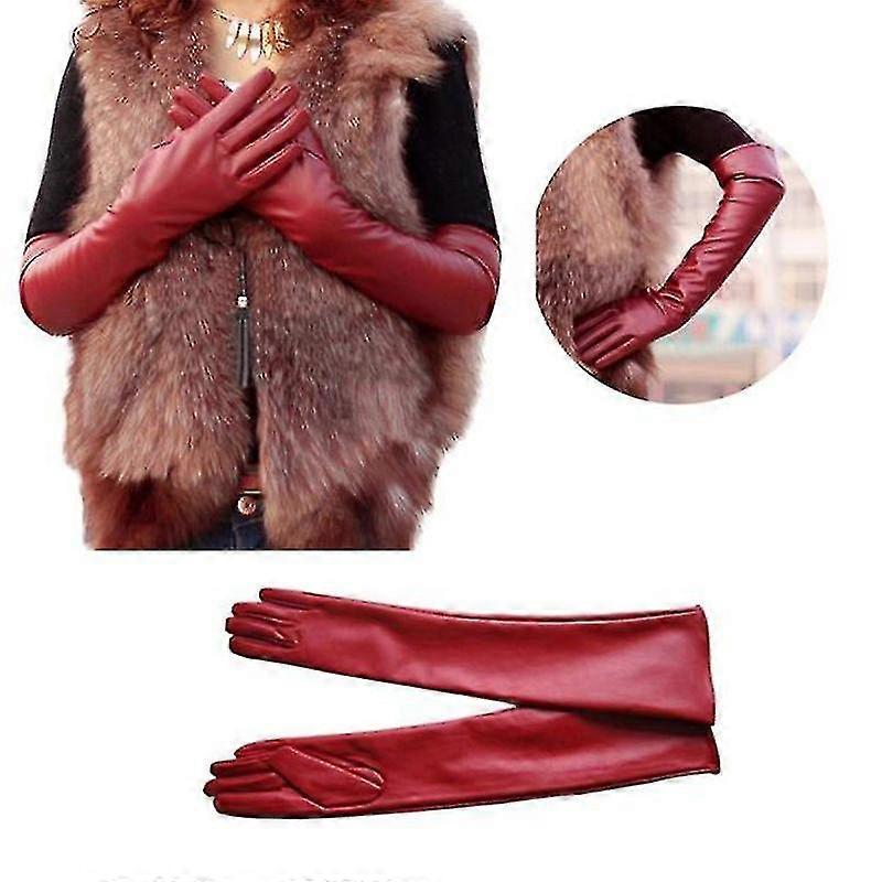 Women Long Leather Gloves Full Finger Winter Elbow Opera Ladies Gloves