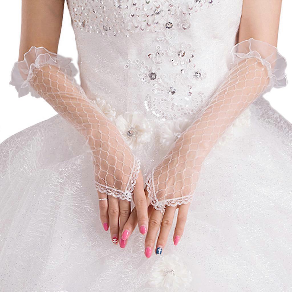 Women Long Lace Gloves Elegant Summer Princess Formal Fingerless Mittens for Wedding Dinner Party Pageant Costume Favors White