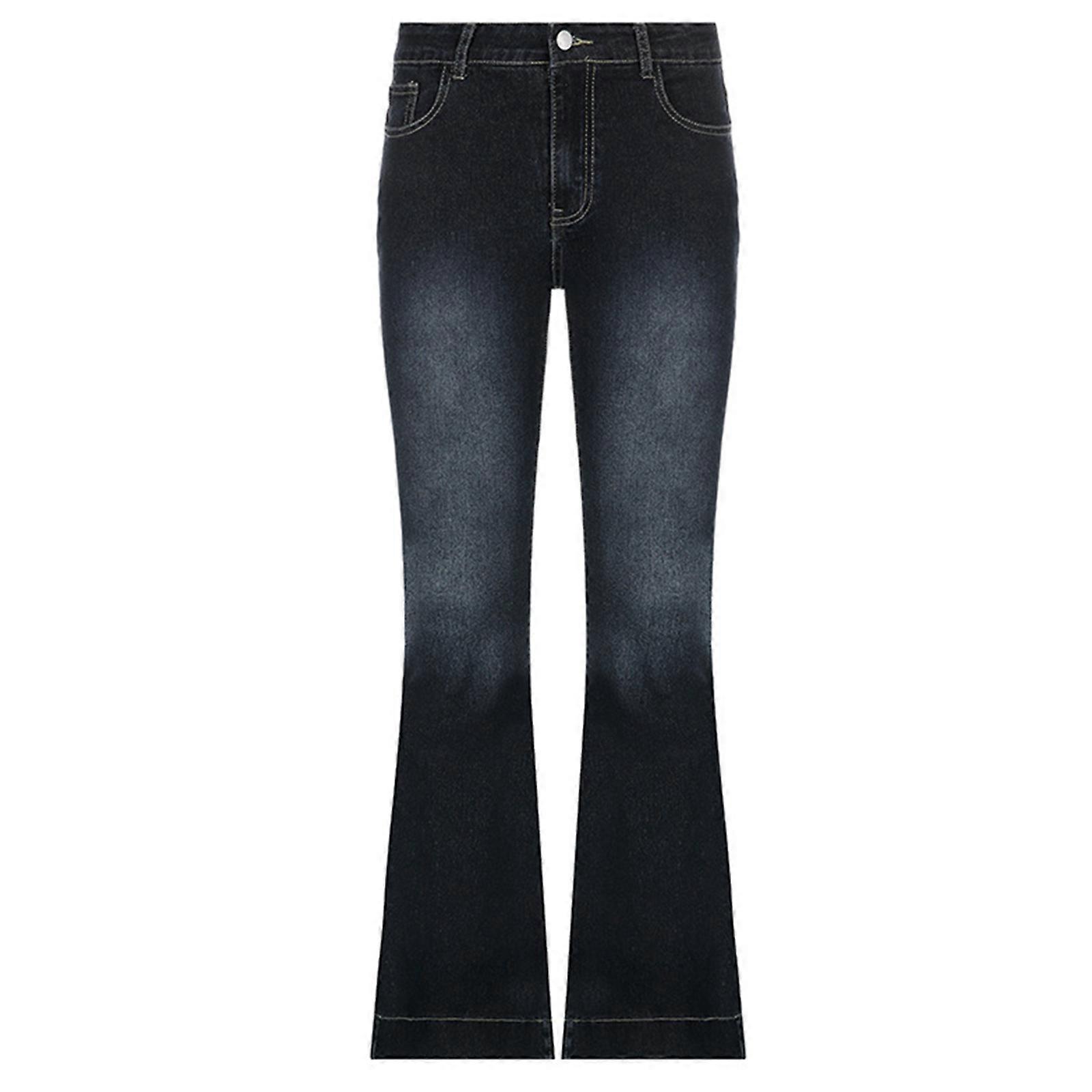 Women Low Rise Slim Fit Flared Jeans Vintage Wide Leg Bell Bottom Denim Trousers Spring Summer Casual Skinny Long Pants S