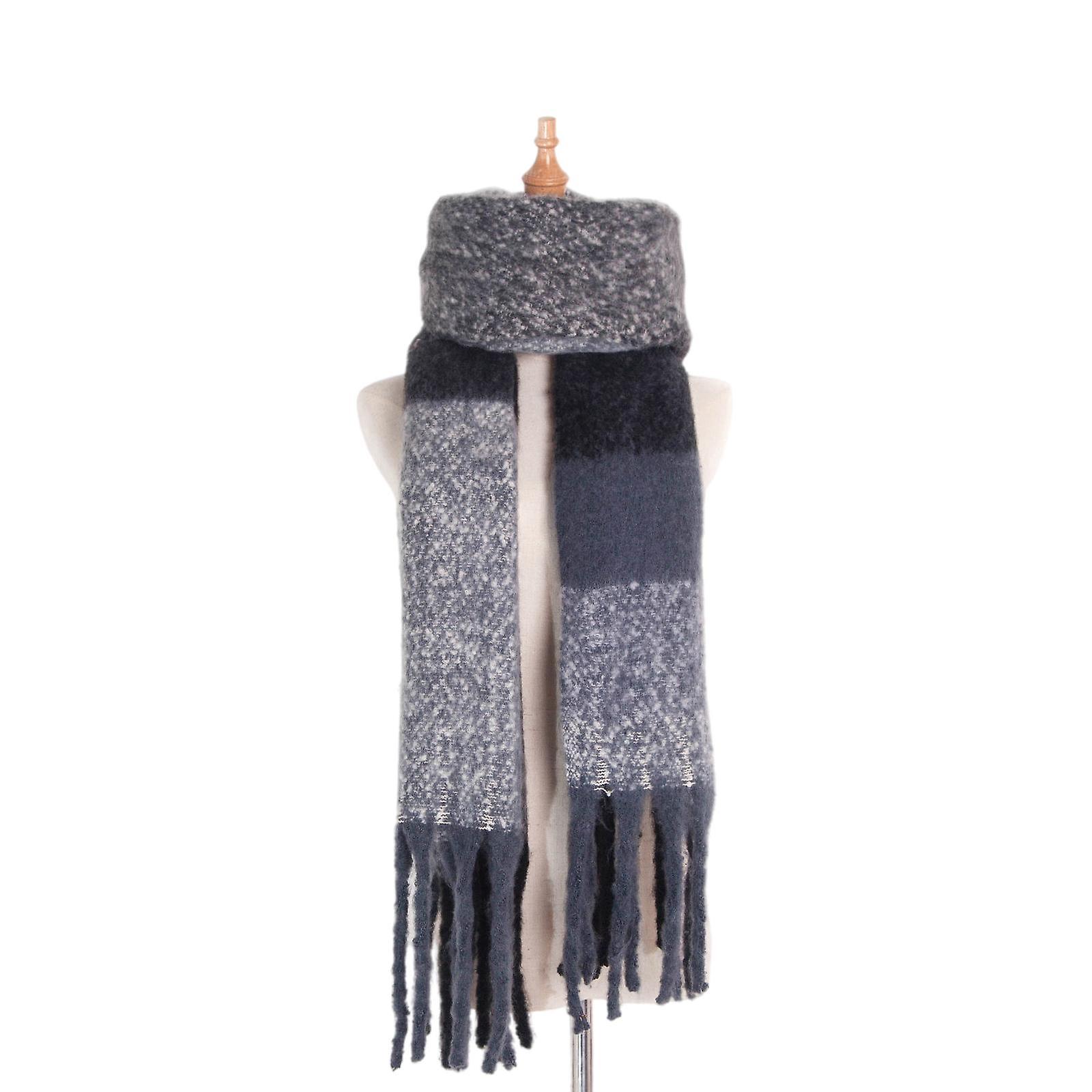 Women Winter Warm Scarf Long Wrap Shawl Plaid Knit Scarf Cape Black Grey