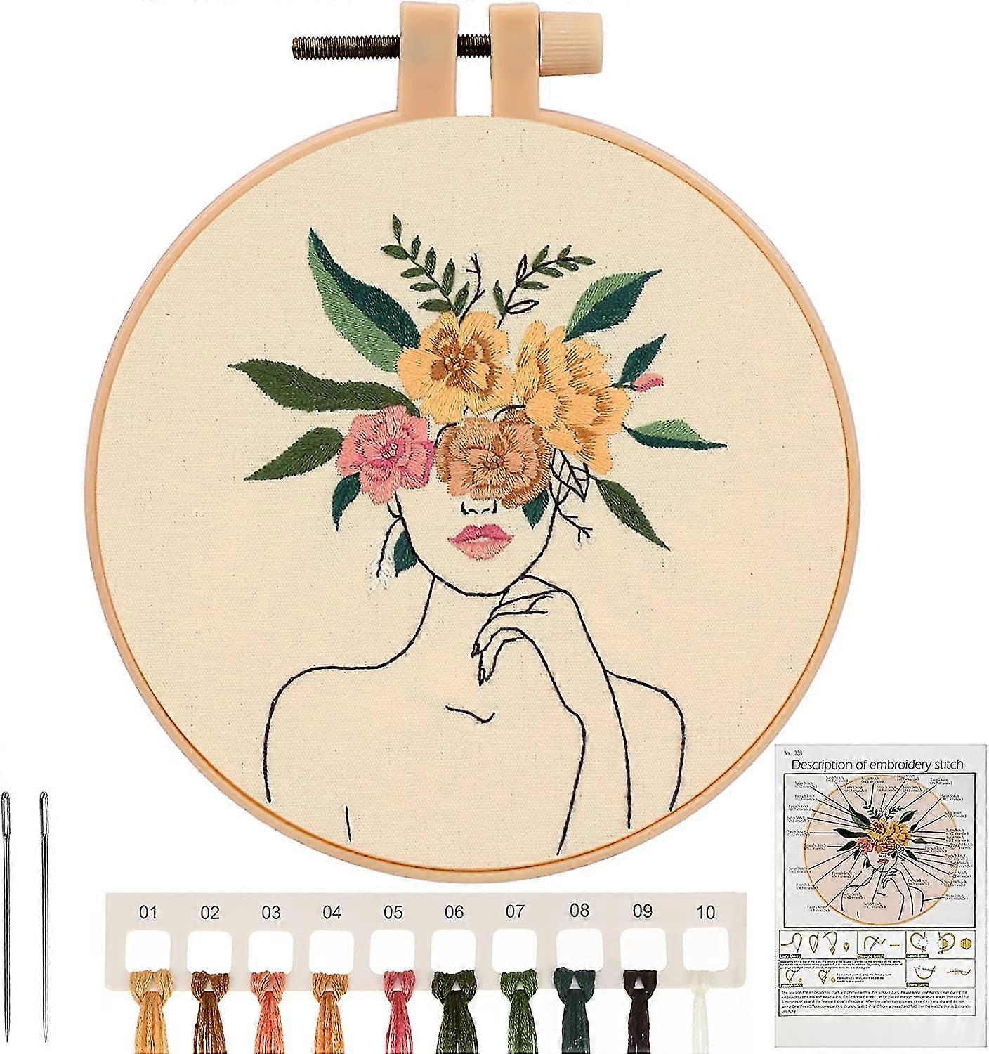 Woman Embroidery Starter Kit, Diy Cross Stitch Embroidery Starter Kit With Embroidery Hoops,embroidery Starter Kit For Beginner