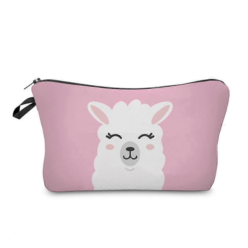 Women Makeup Bag Cute Small Cosmetic Pouch Handbag Pink Alpaca Pattern Waterproof Zipper Protection Outing 1Pcs