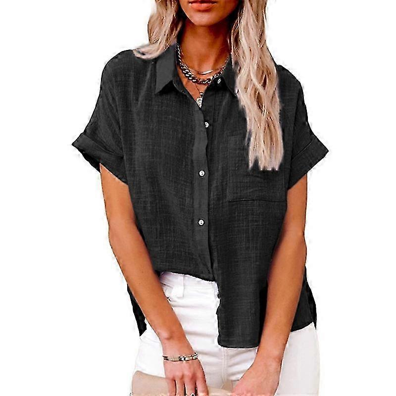 Women Short Sleeve Cotton Linen Shirts Button Down Blouse Gauze Collared Summer Tops Boho Casual Ladies Clothes