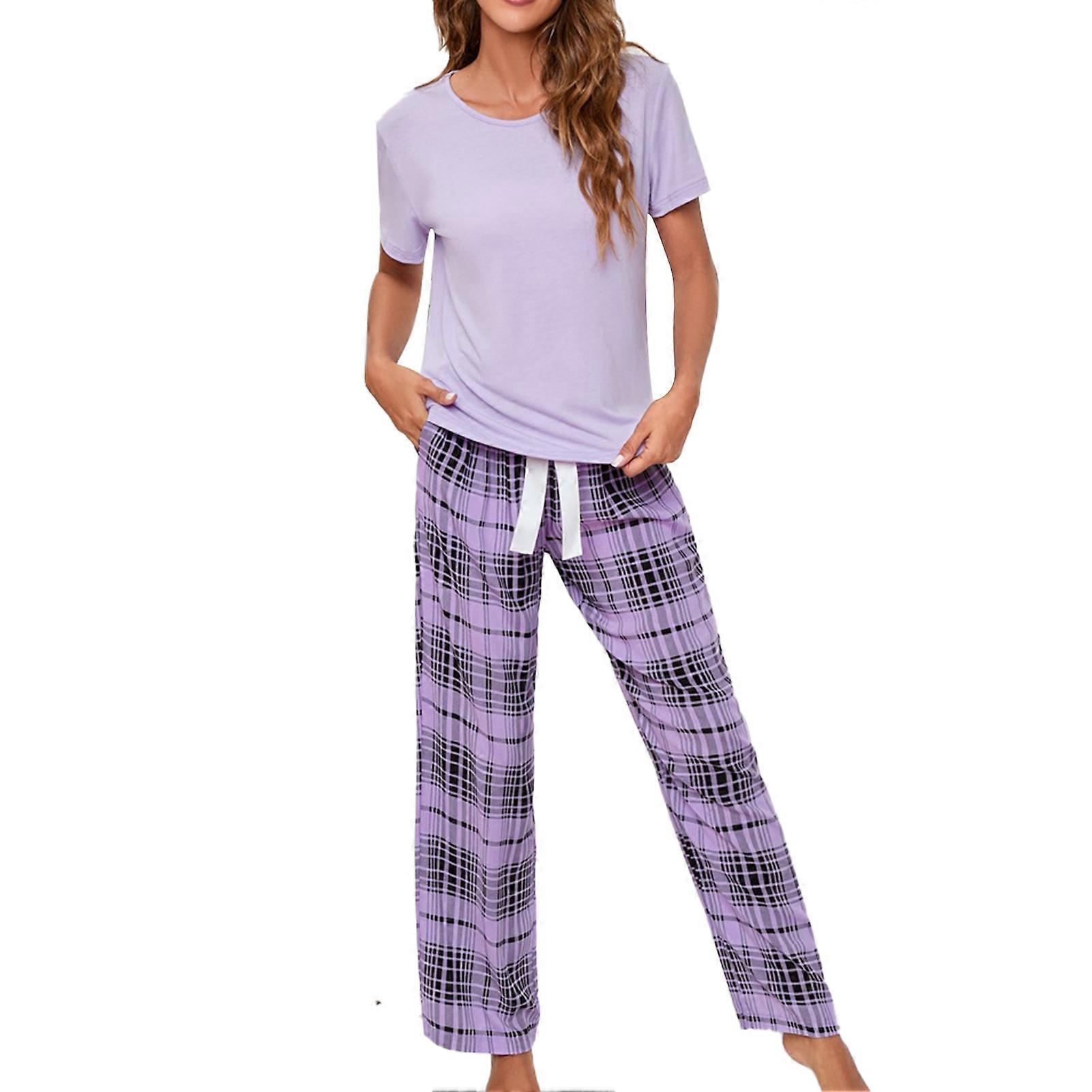 Item Type: Women Loungewear SetMaterial: 100% polyesterWashing Method: Machine washCharacteristics: Pure color crewneck top, drawstring cosure, plaid print pants, casual loungewear set.Matching: Can be matched with slippers, can be worn as a single item to create a casual and comfortable home look.Scenes: Perfect for casual, home, shopping, dating, street, office, work, basic, party, outdoor, indoor, daily wear.Top Size: Approx. S Length: 65cm /