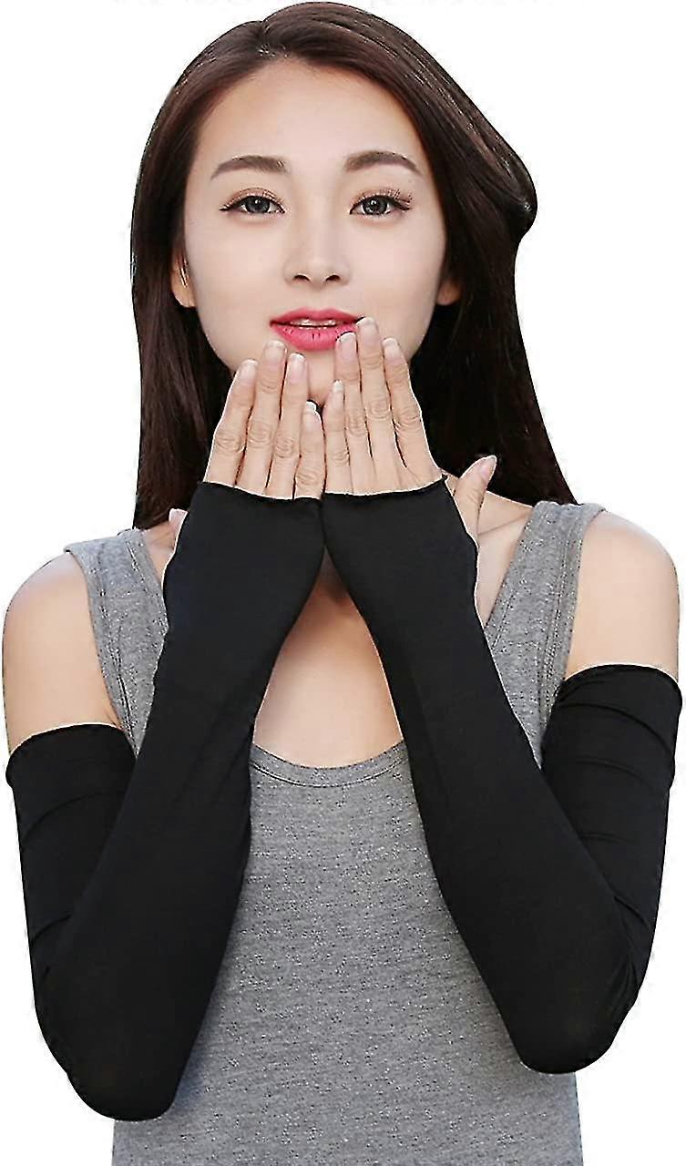 Women Outdoor Sun Block Soft Long Arm Sleeves Fingerless Gloves