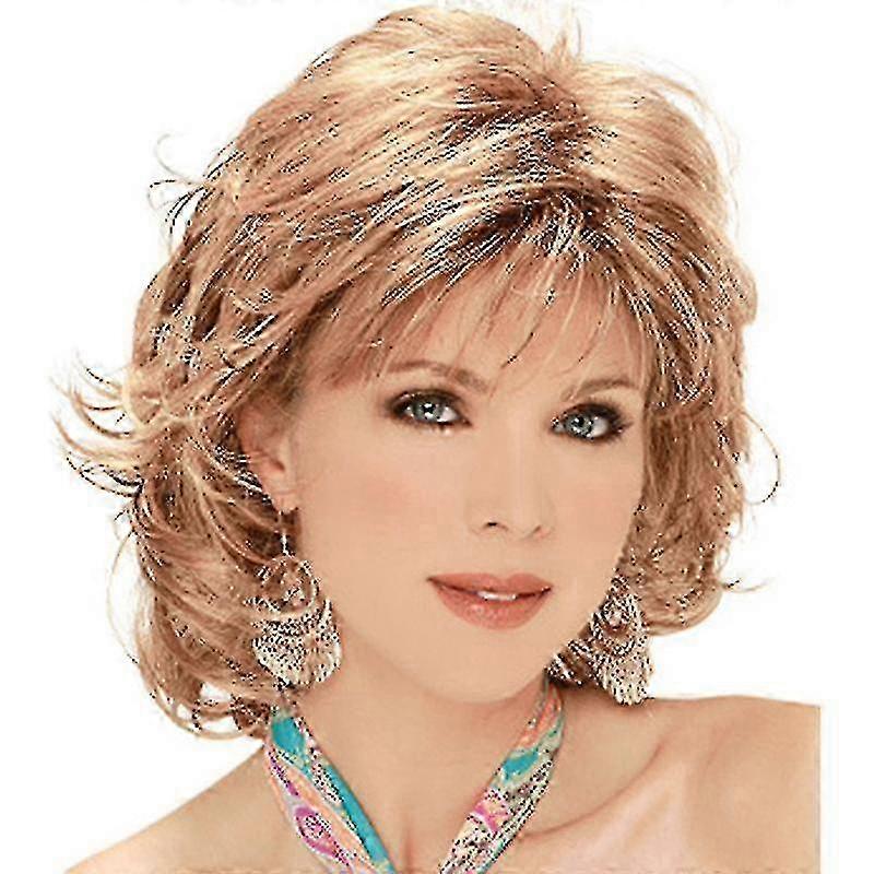 Women Layered Synthetic Wigs Blonde Short Curly Wavy Hair Wig Z
