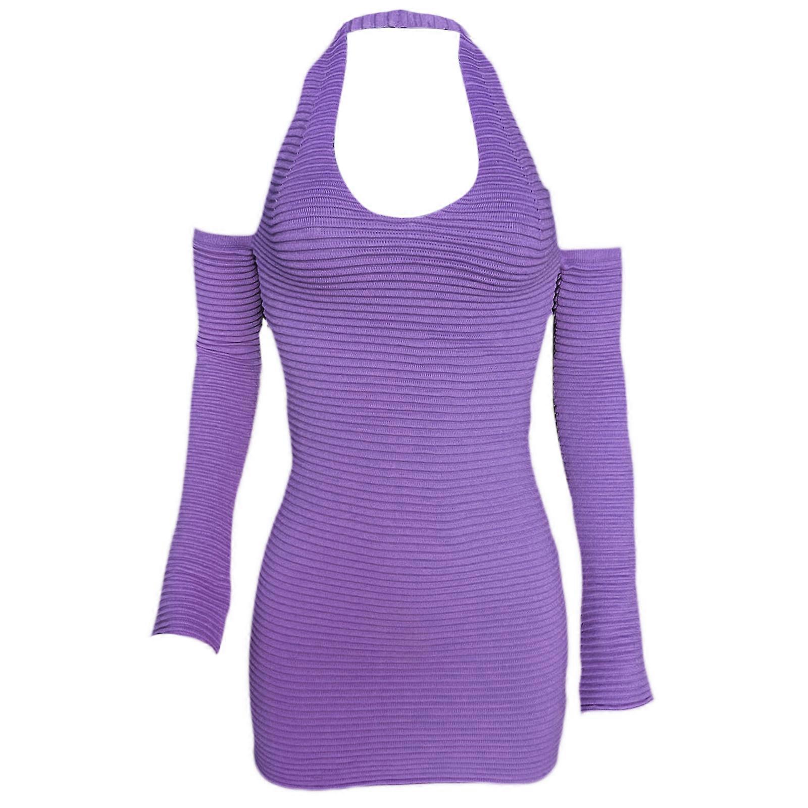 Women Warm Autumn Tunic Knit Short Sweater Dress for T Shirt U Neck Long Sleeve Slim Dress Hip Sweater Dress Mini Sexy D Purple XL