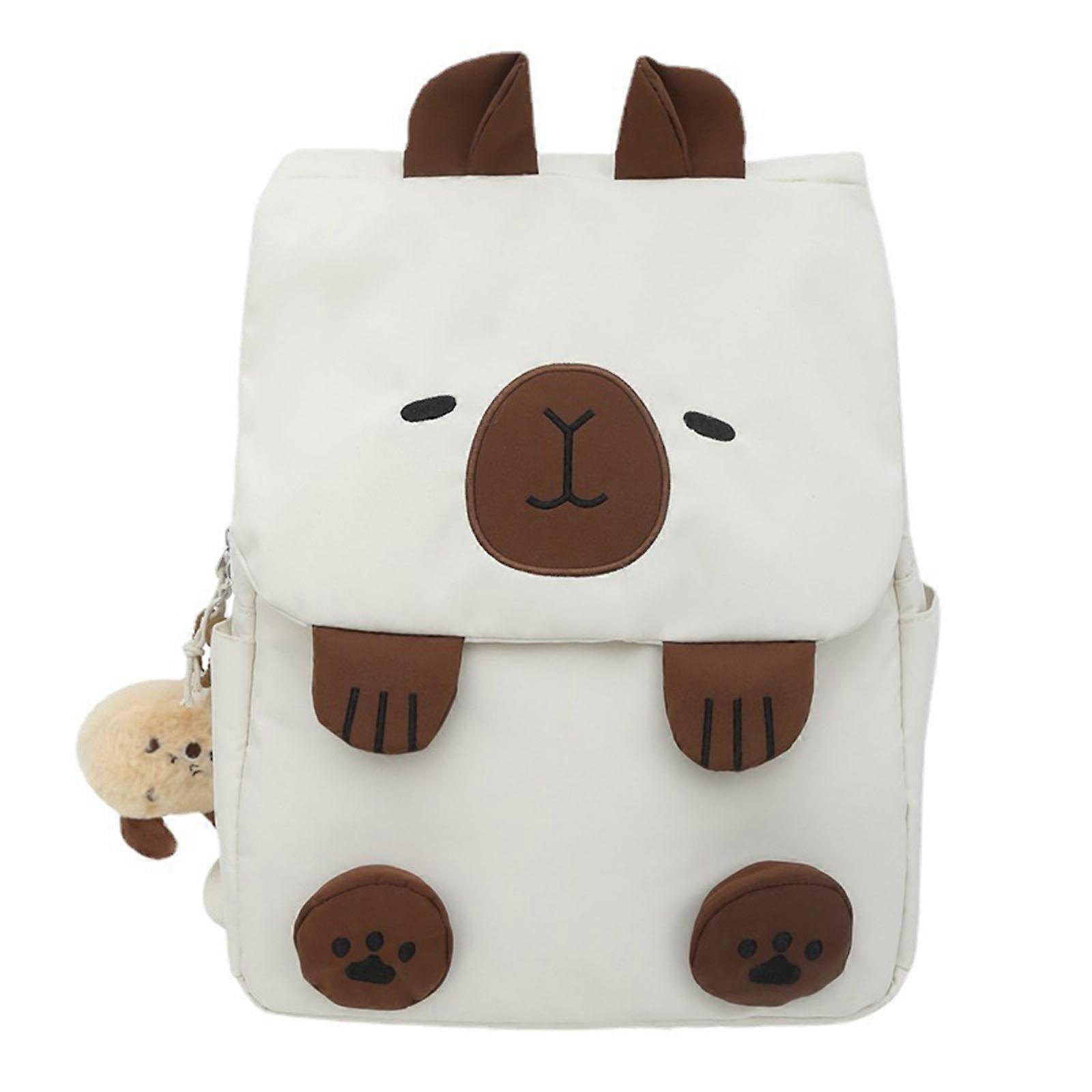 Women Cartoon Capybara Flap Backpack Girl Travel Backpack Student Schoolbag Zippered Daypack for College Work Casual White