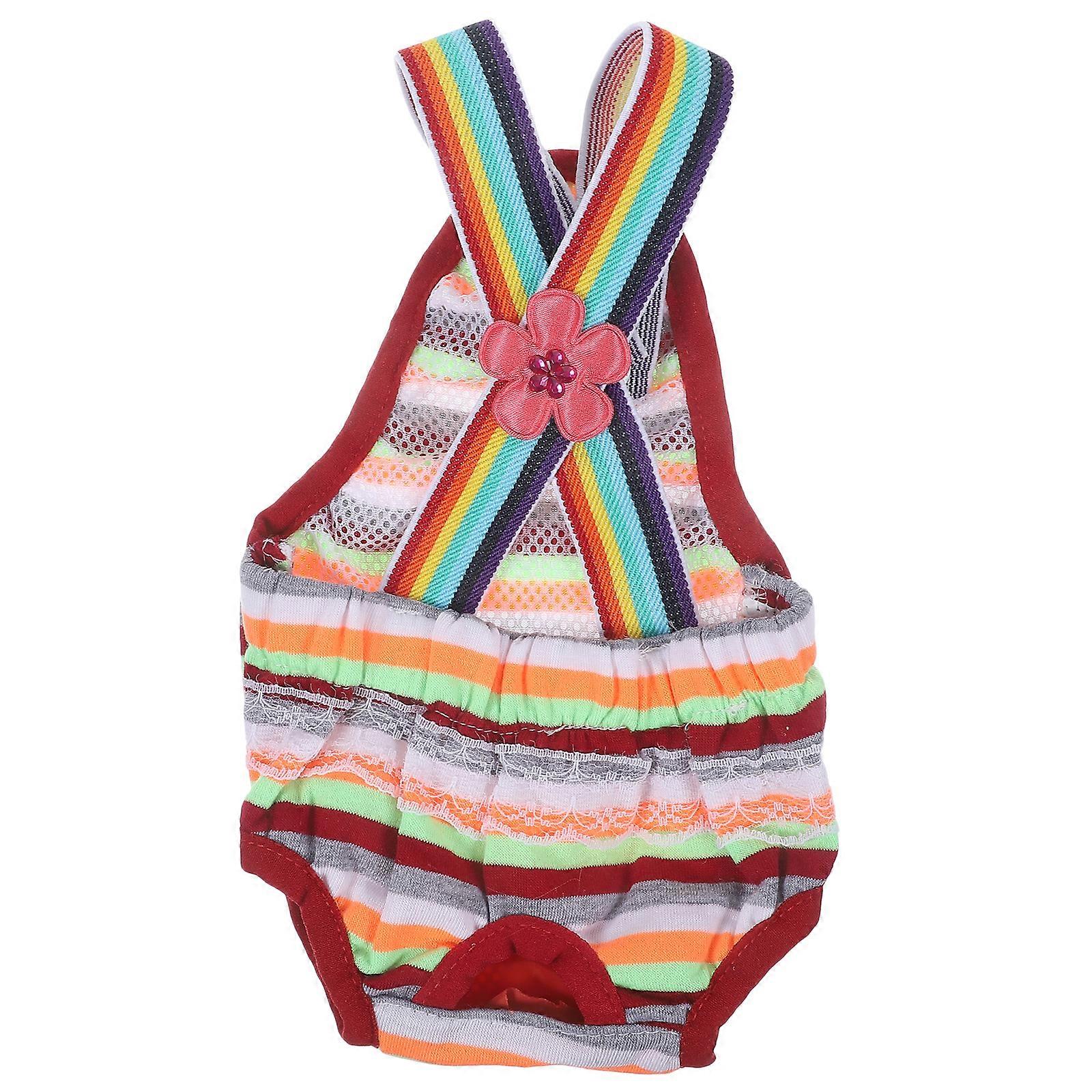 Female Dog Suspender Sanitary Pants Diaper with Colorful Strips - Size M