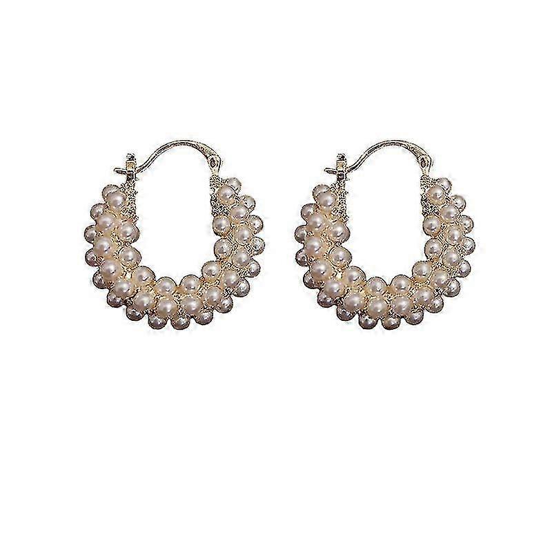 Women's Elegant Imitation Pearl Hoop Earrings Material: Copper Shape: Geometric Processing: Real Gold Electroplating Popular Elements: Pearls Style: Women's Package Includes: 1 pair of earrings