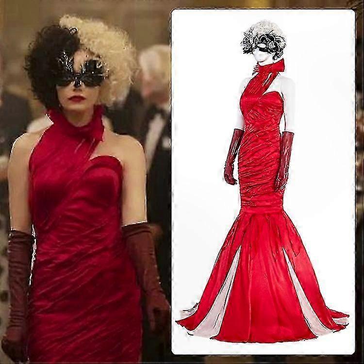 Red Evening Gown with Wig for Women Halloween Carnival Costumes Cosplay Dresses Adult Theme Party Outfits