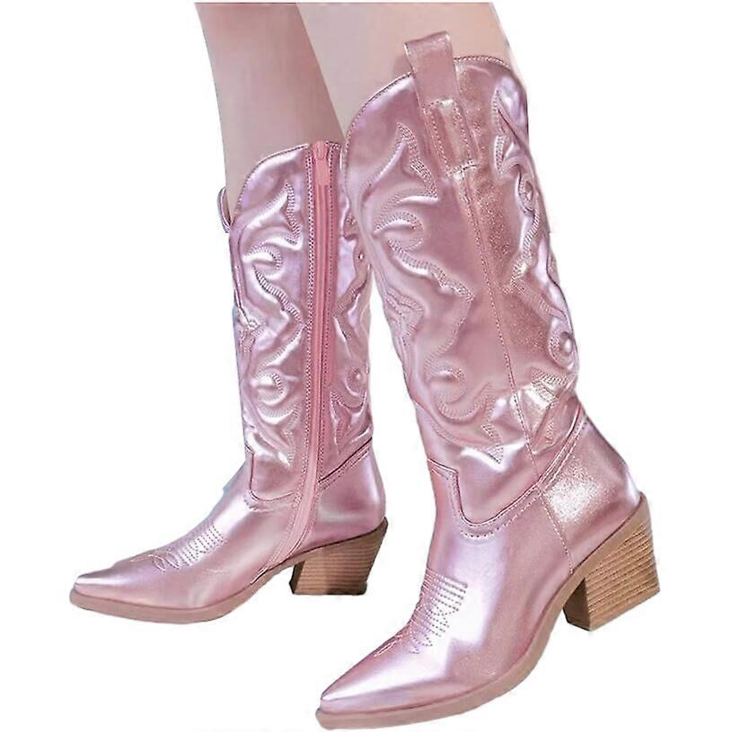 Women's Western Knee High Boots, Cowboy Cowgirl Embroidered Pointed Toes Slip on Boots
