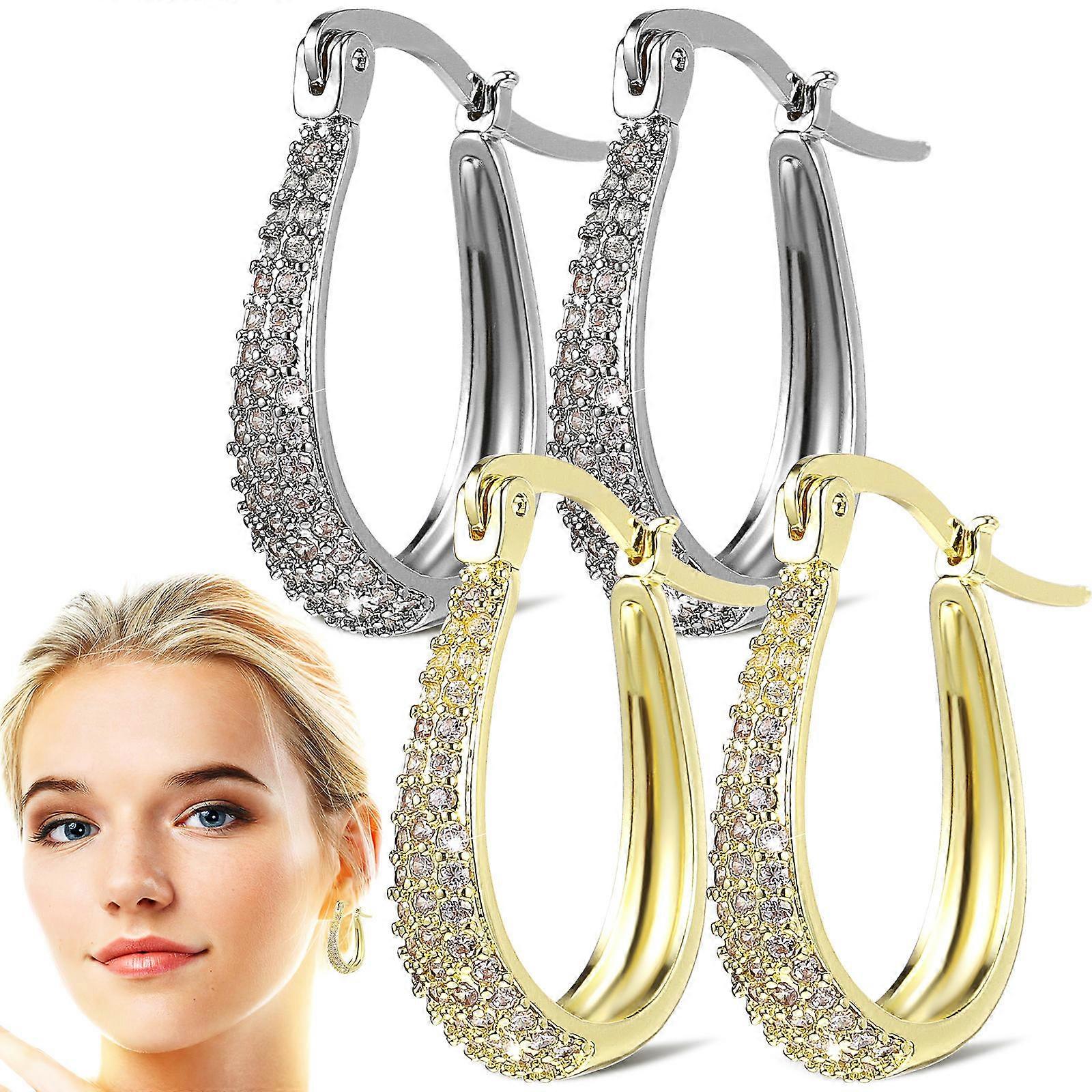 Elegant Zircon Hoop Earrings for Women, 2 Pairs Gold Silver U Shaped Dangle Jewelry Accessories for Weddings, Parties, and Daily Wear
