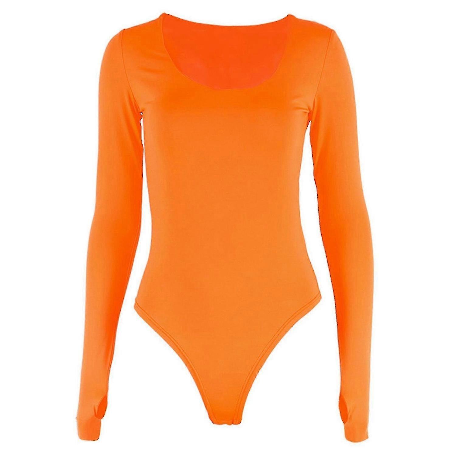 Women's Orange Long Sleeve Bodysuit - Slim Fit Leotard for Dancing Stylish and Attractive