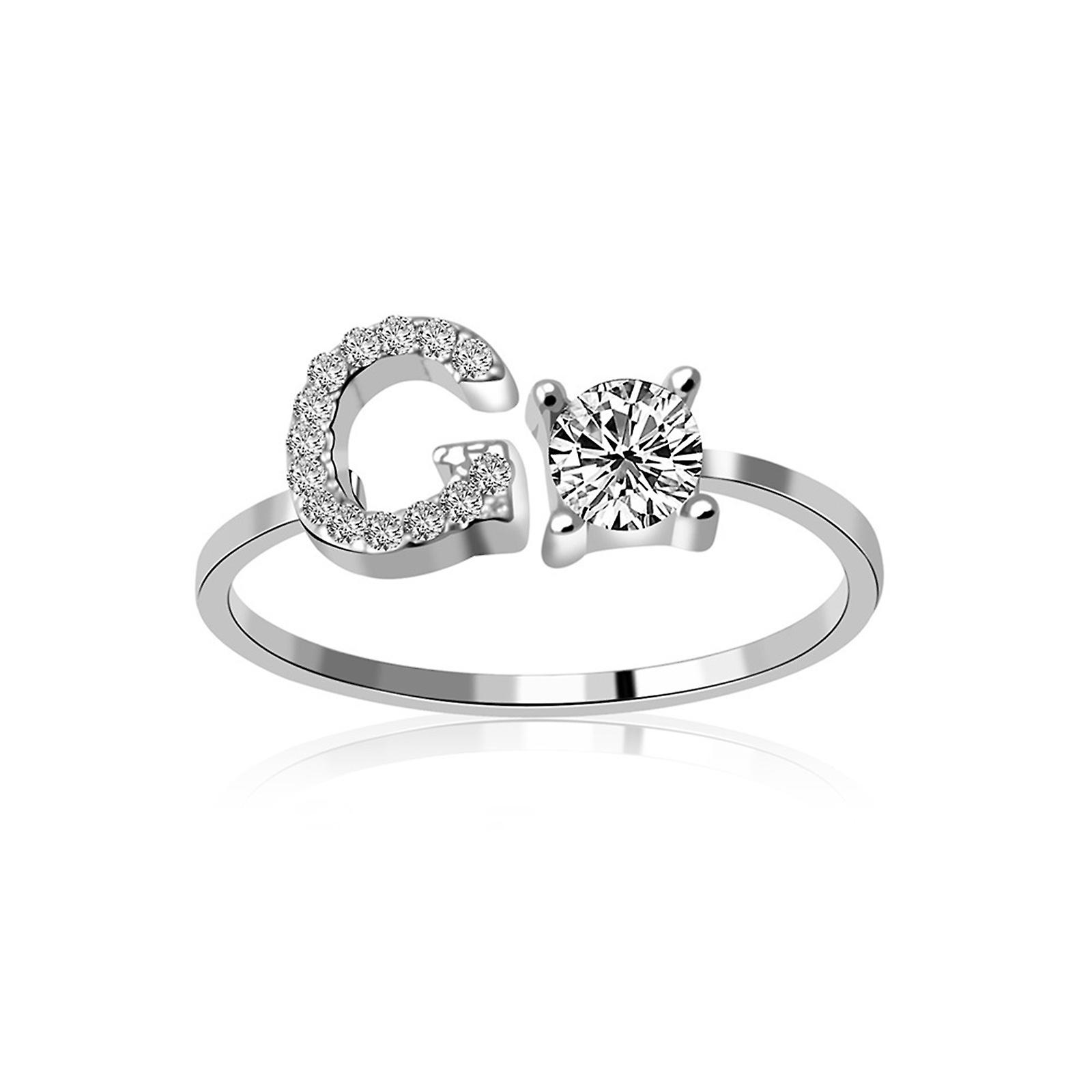 Women's Open Ring 26 Letter Diamond Adjustable Rings Anniversary Birthday Gifts for Girls