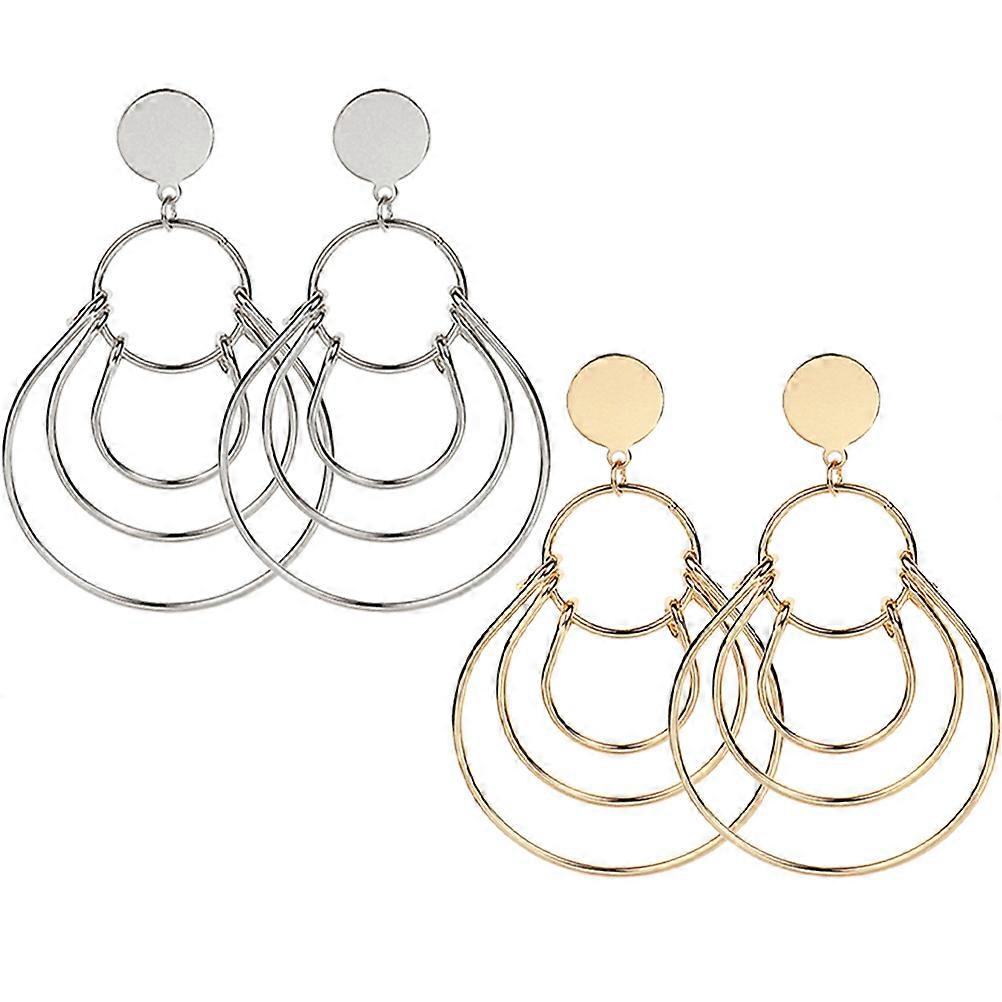 Assorted Color Lightweight Alloy Hoop Earrings for Women 2 Pairs Perfect for Decoration