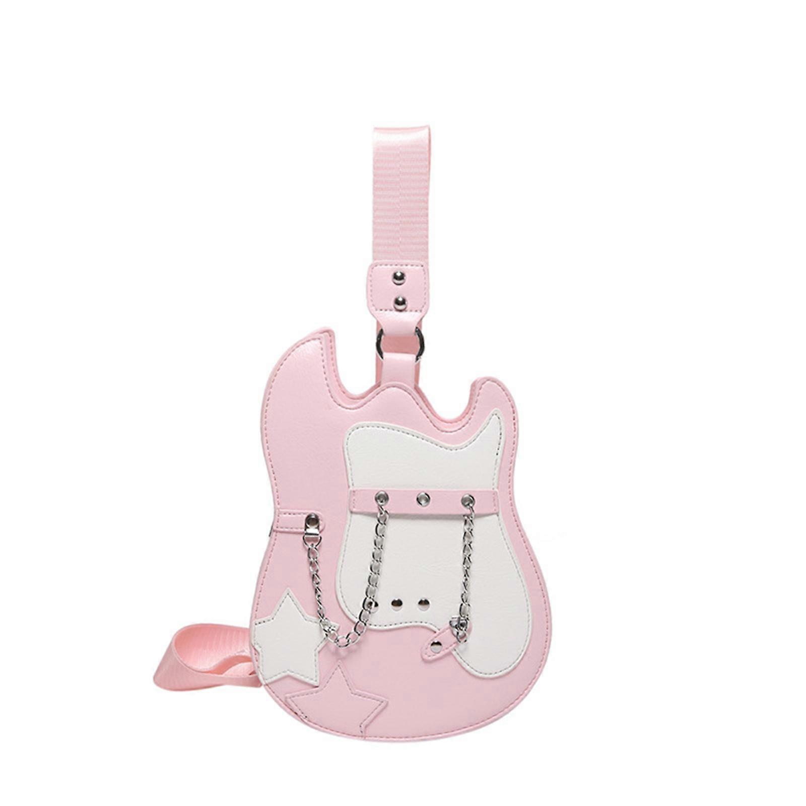 Fashionable Women’s Guitar Shaped Crossbody Bag PU Leather Shoulder Purse with Adjustable Strap and Chain Decoration Pink