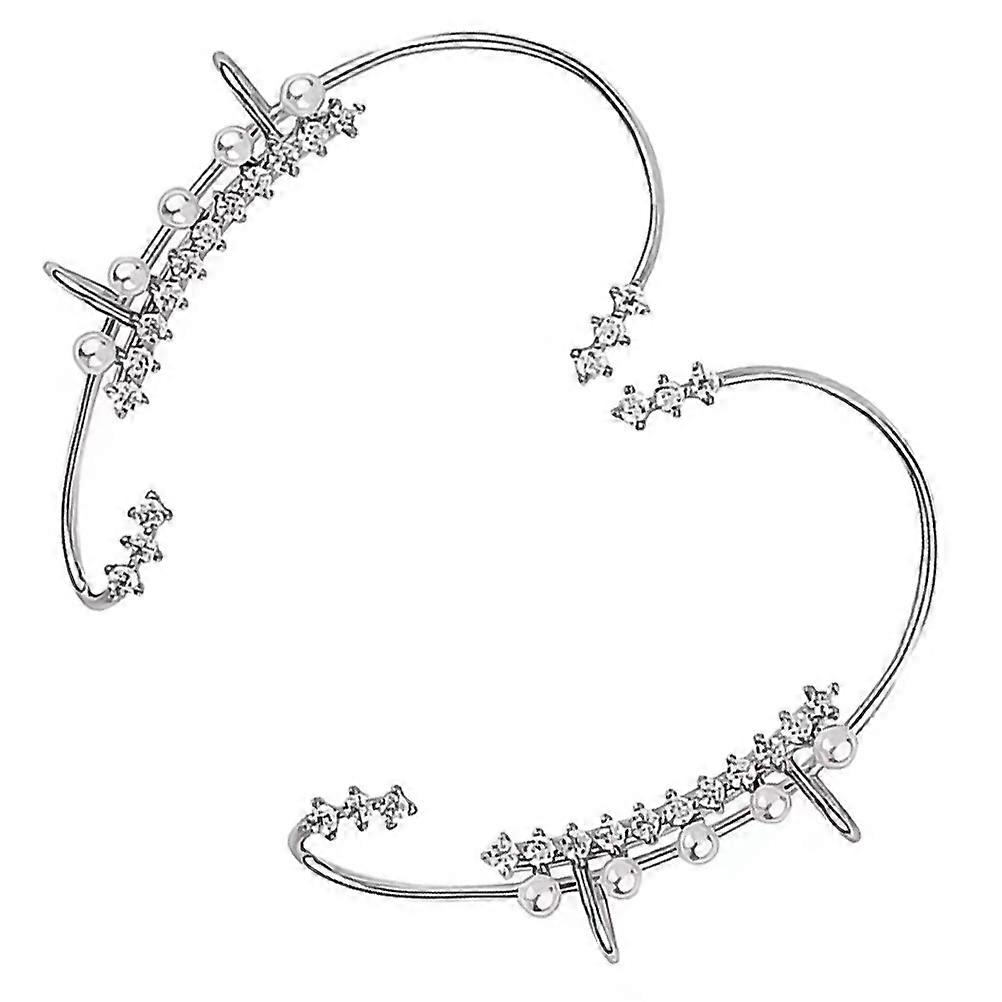 Sparkly Non-Piercing Crystal Ear Clips for Females Zinc Alloy Silver Color 2 Pcs