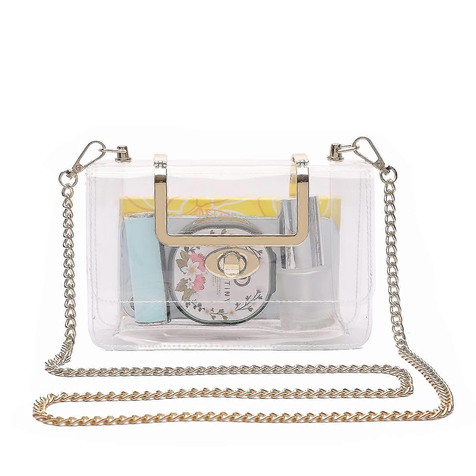 Removable & Long Chain: The length of the removable silver chain strap is 47.2inch, even a 5'8 lady can wear it as crossbody bag. And this fashion, cute and small clear purse can be used as a clear handbag, clear clutch, shoulder bag and crossbody bag, you can totally enjoy sports games or music, happily put your hands up.