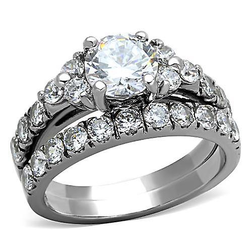High polished (no plating) Stainless Steel Ring with AAA Grade CZ in Clear for Women Style TK1331
