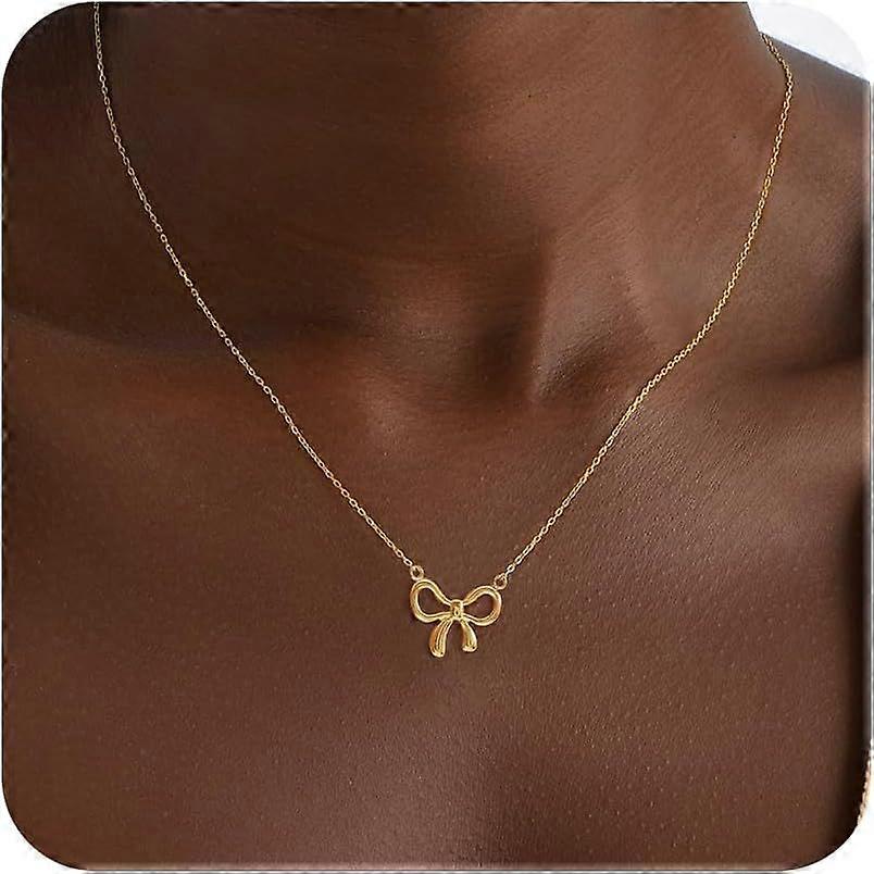 Gold Necklace for Women - 18K Gold Plated Bow Necklace Dainty Gold Necklace Personalized Bow Pendant Choker Chain Necklace Gold Bow Necklace for Women