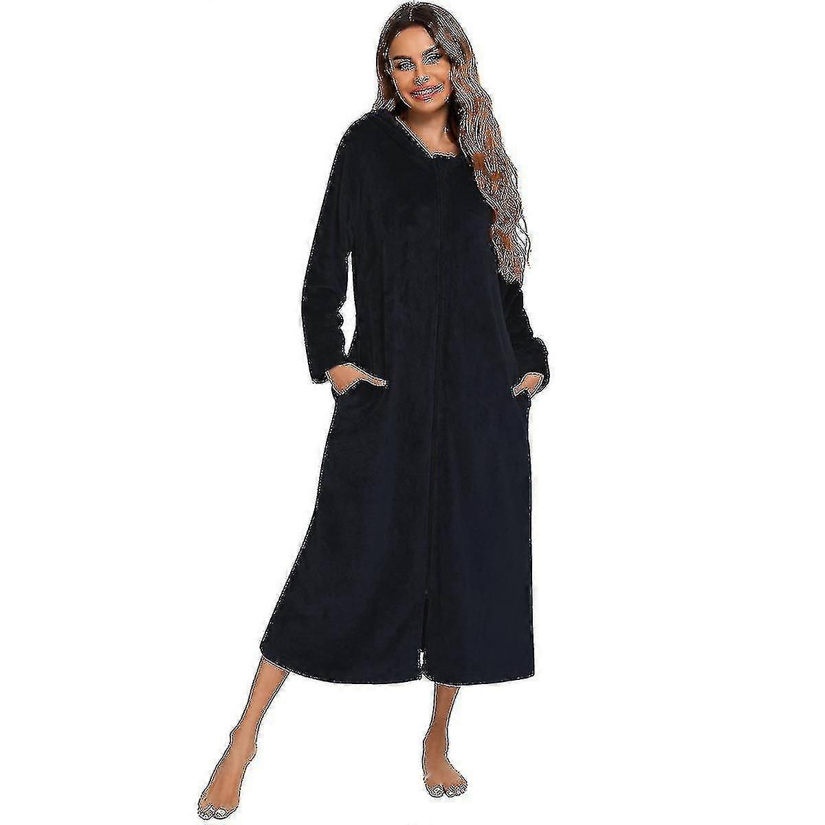 Women's Zip Up Plush Fleece Robe Hooded Warm Long Bathrobe Dressing Gown Winter Cozy Zipper Lounger Sleepwear Housecoat Loungewear Nightgown