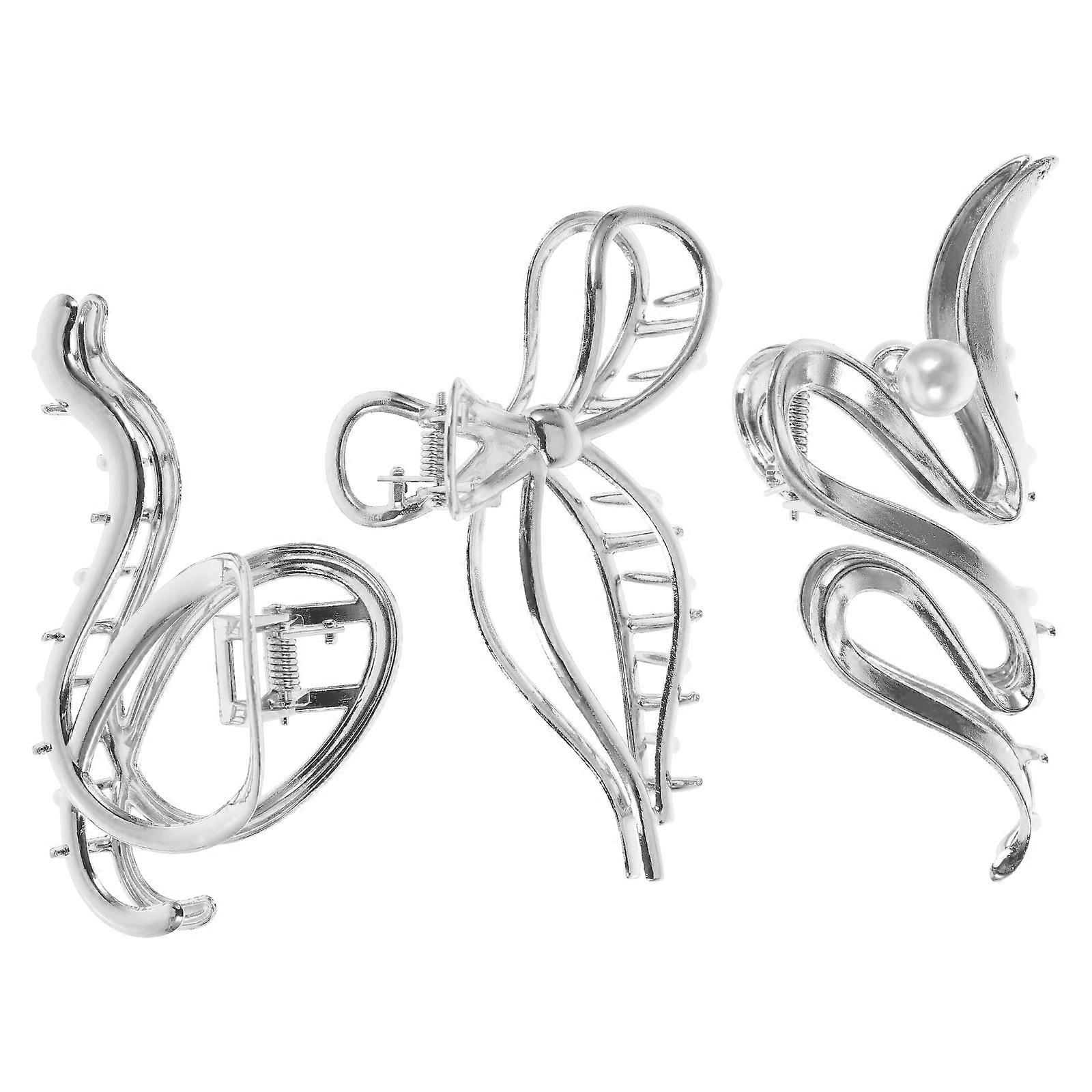 3pcs Jumbo Metal Hair Clips for Women – Silver Hair Claw Clamps with Irregular Designs, Non Damaging, Comfortable Styling Accessories for Daily,